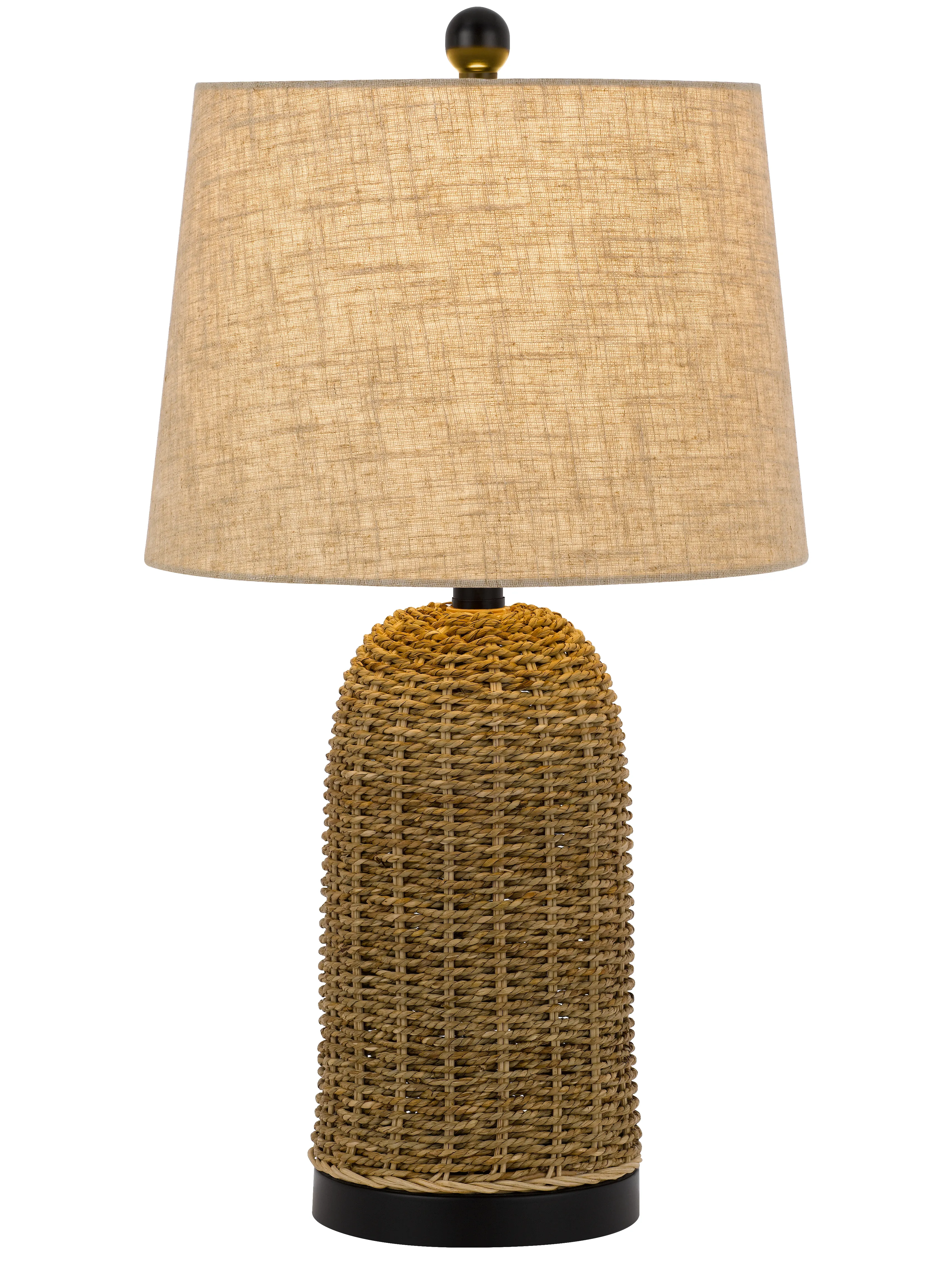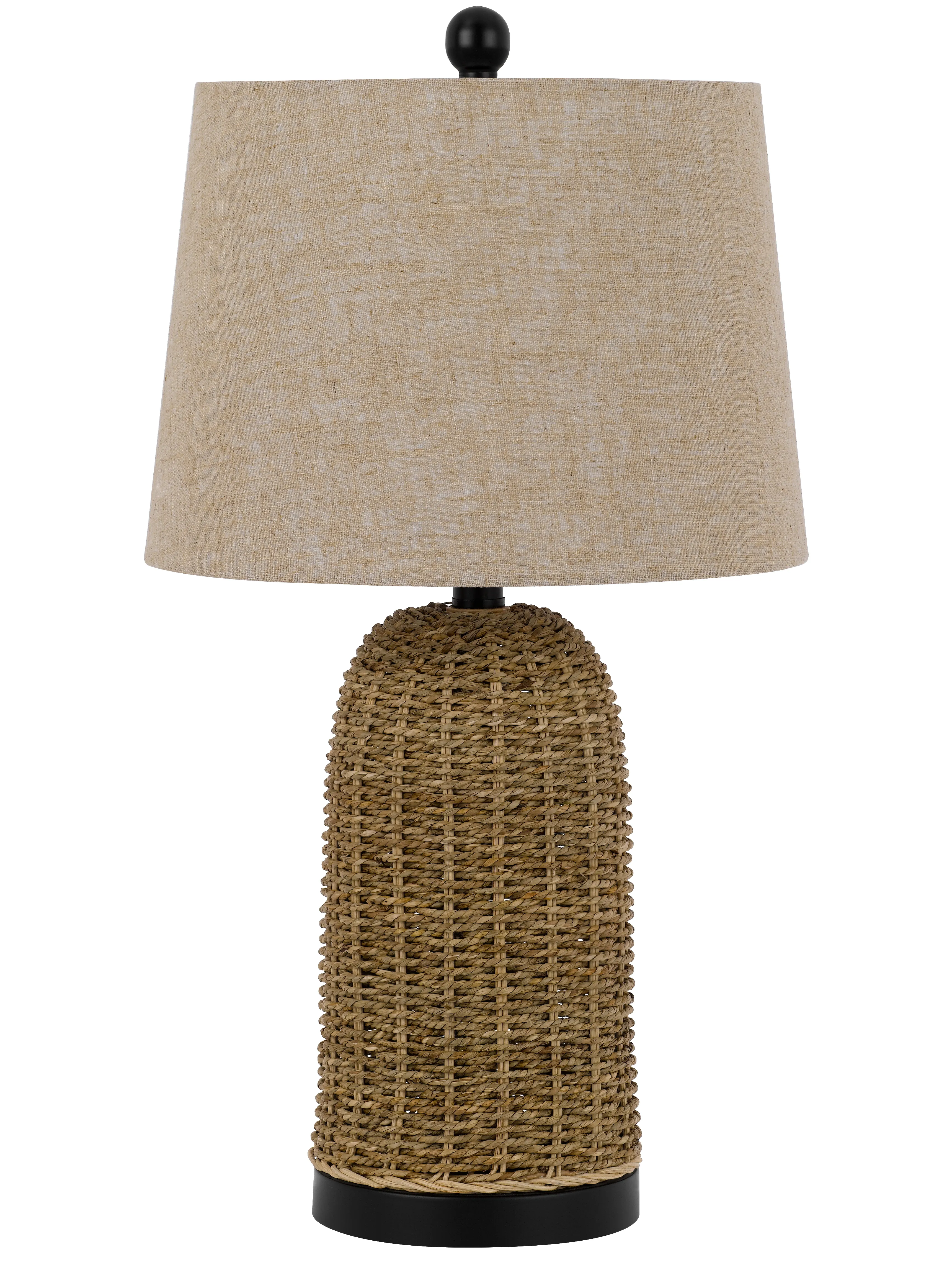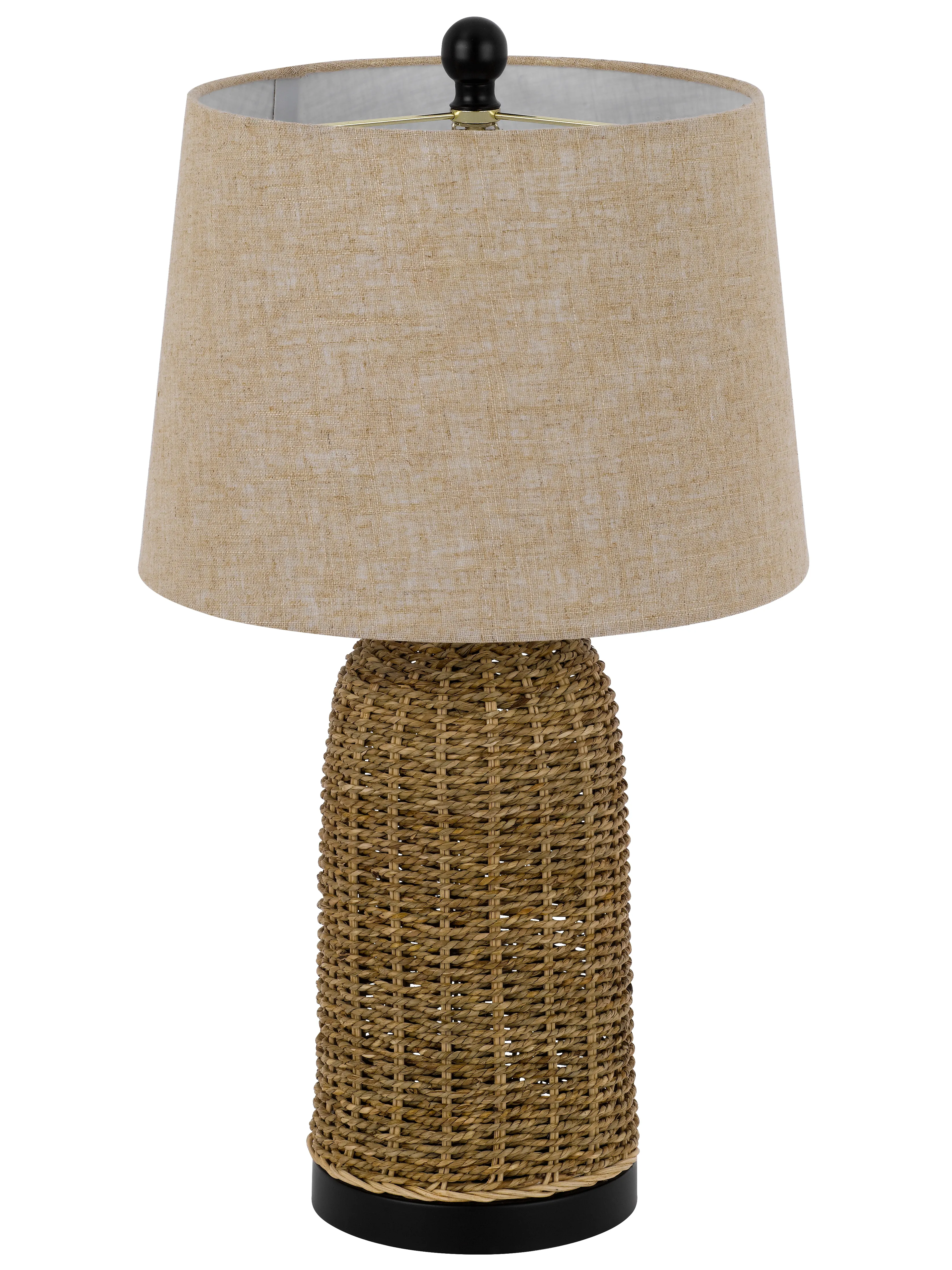 100w 3 Way Indio Wicker Basket Table Lamp With Hardback Burlap Shade