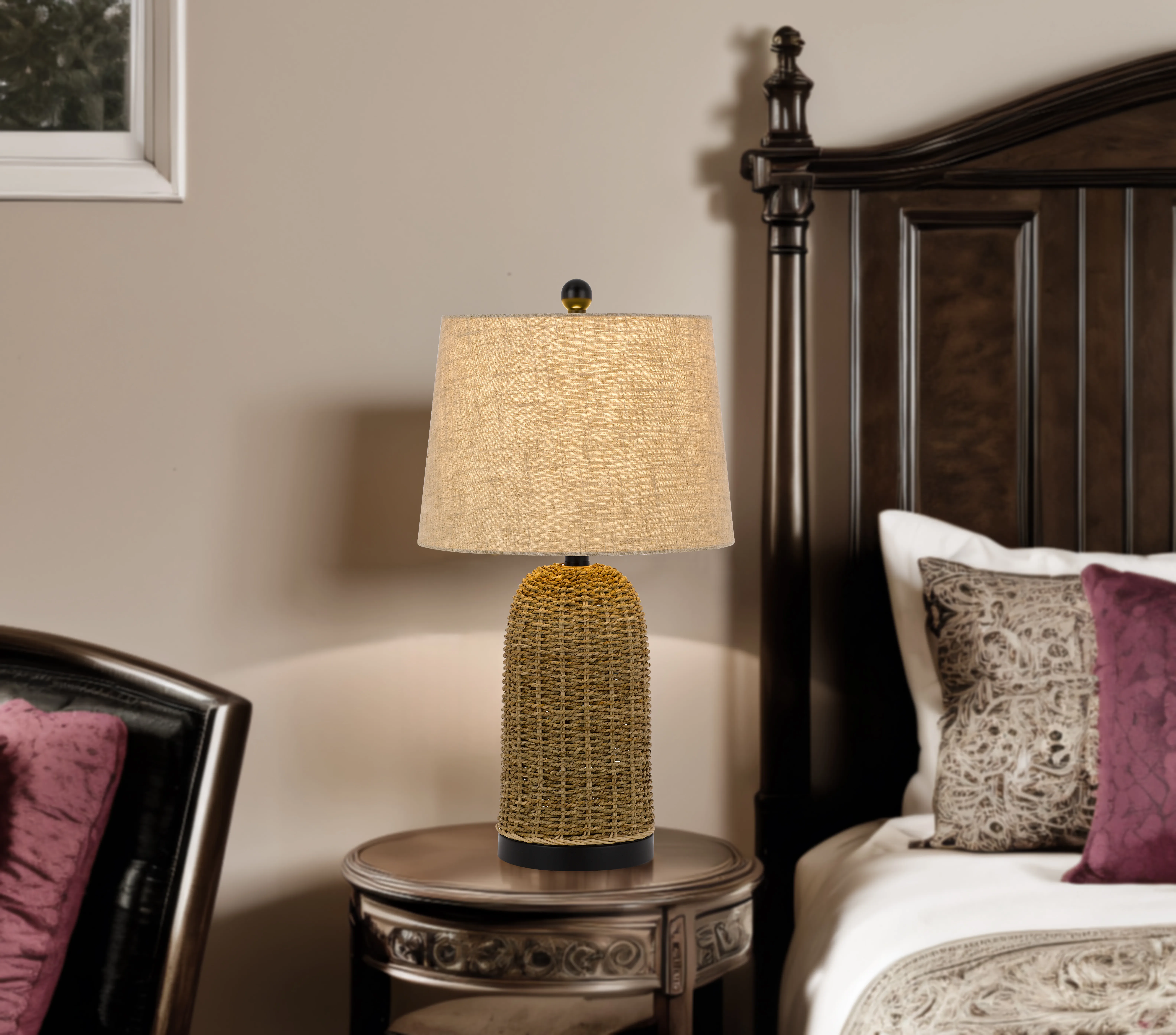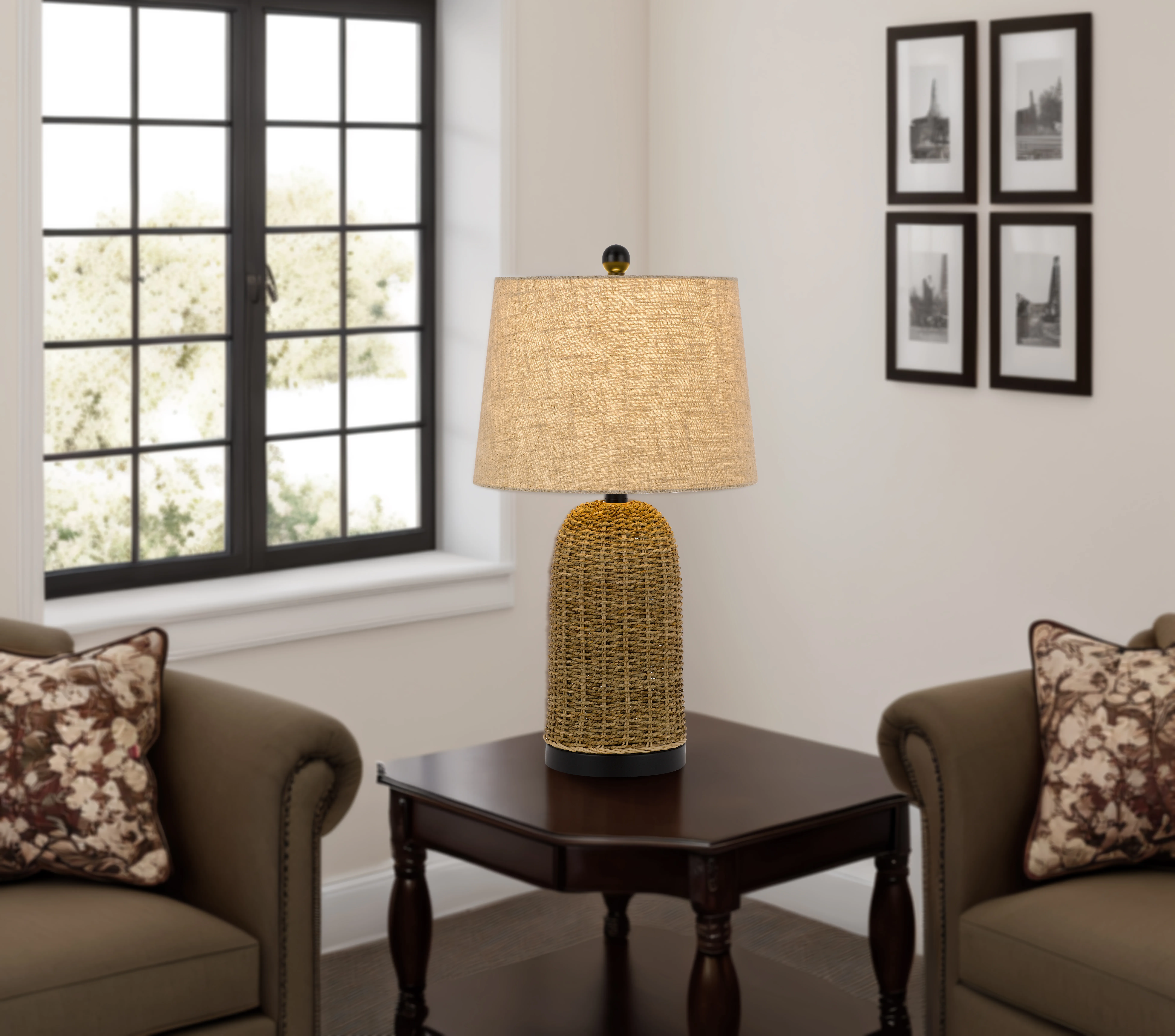 - Brown Wicker Finish with Black Accents