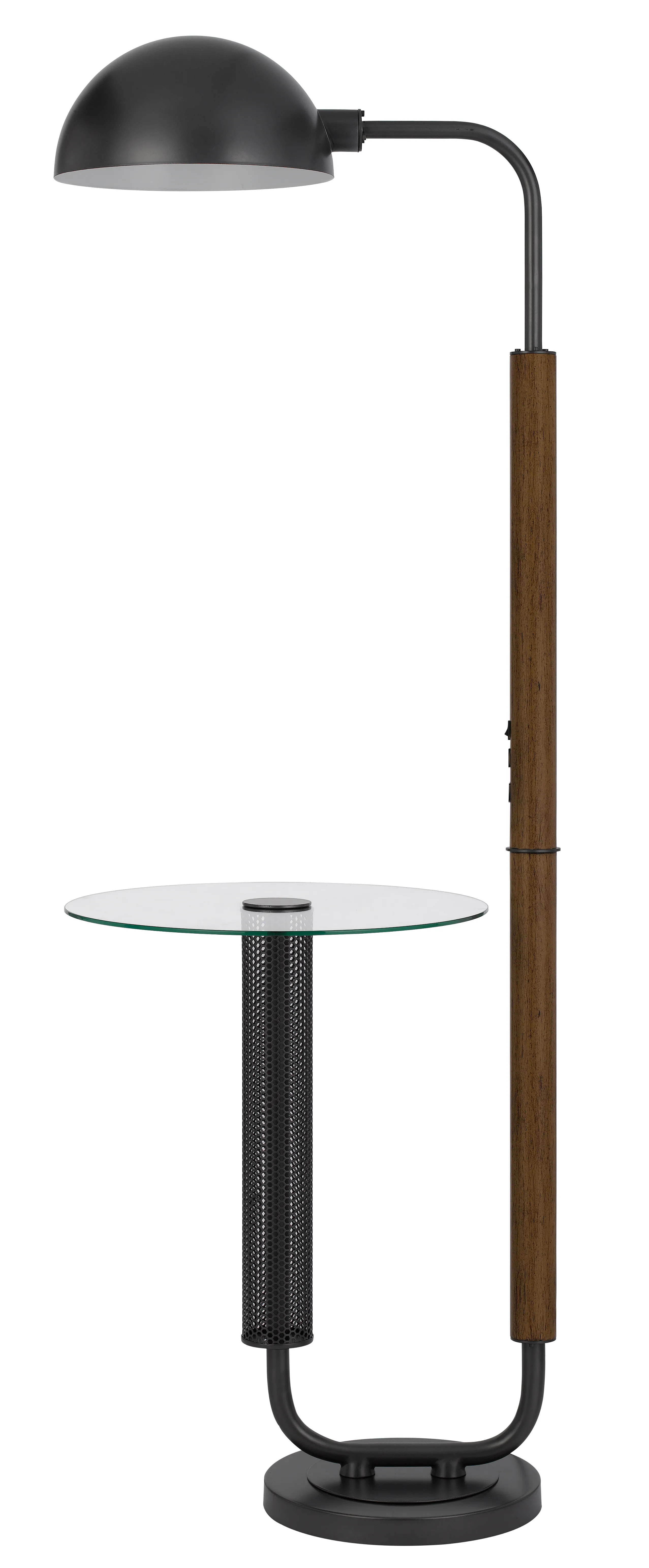 100w Keyser Metal Floor Lamp With Faux Wood Pole And Glass Tray Table And Metal Shade. Equipped With 1 USB And 1 USB-C Charging Ports