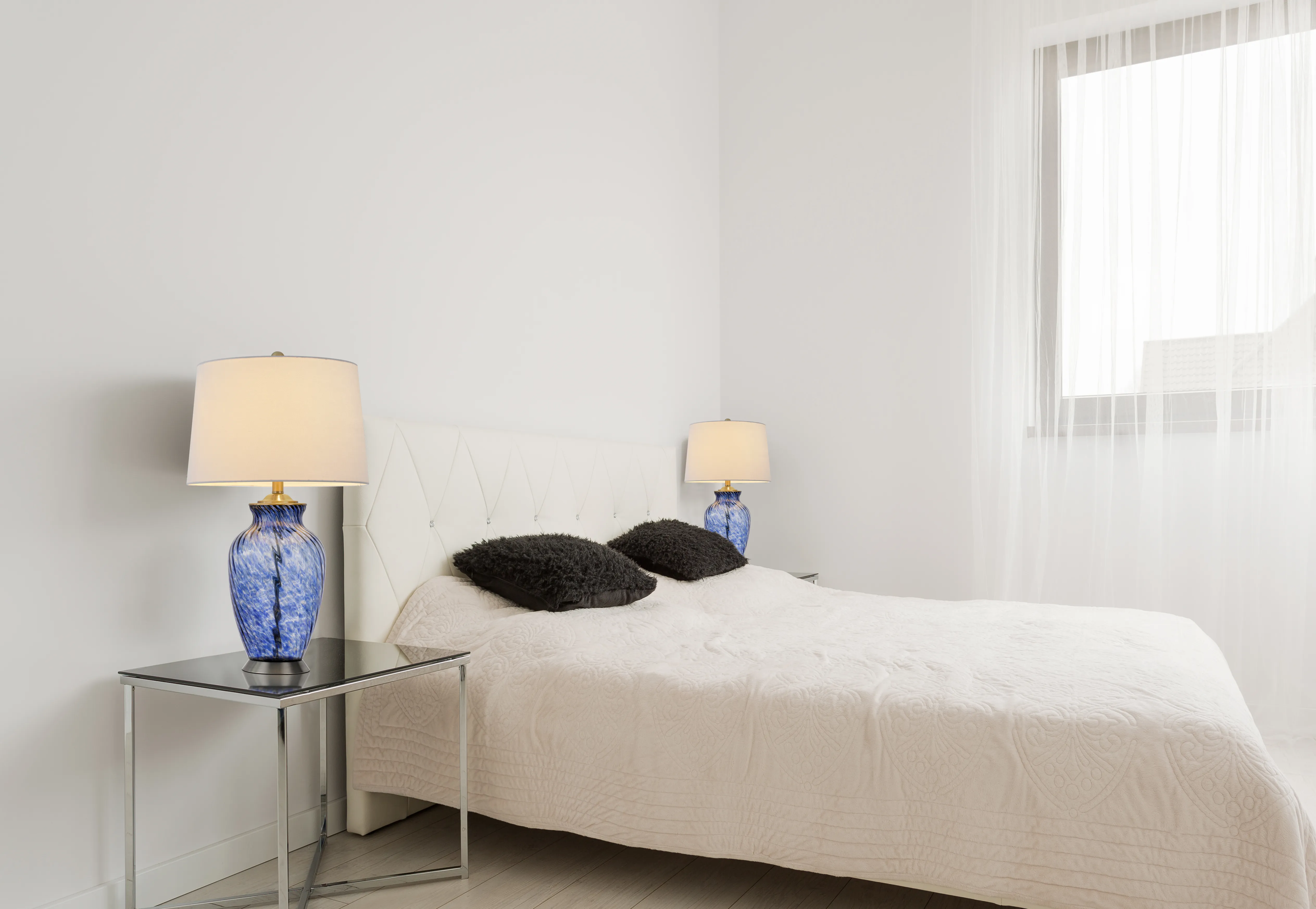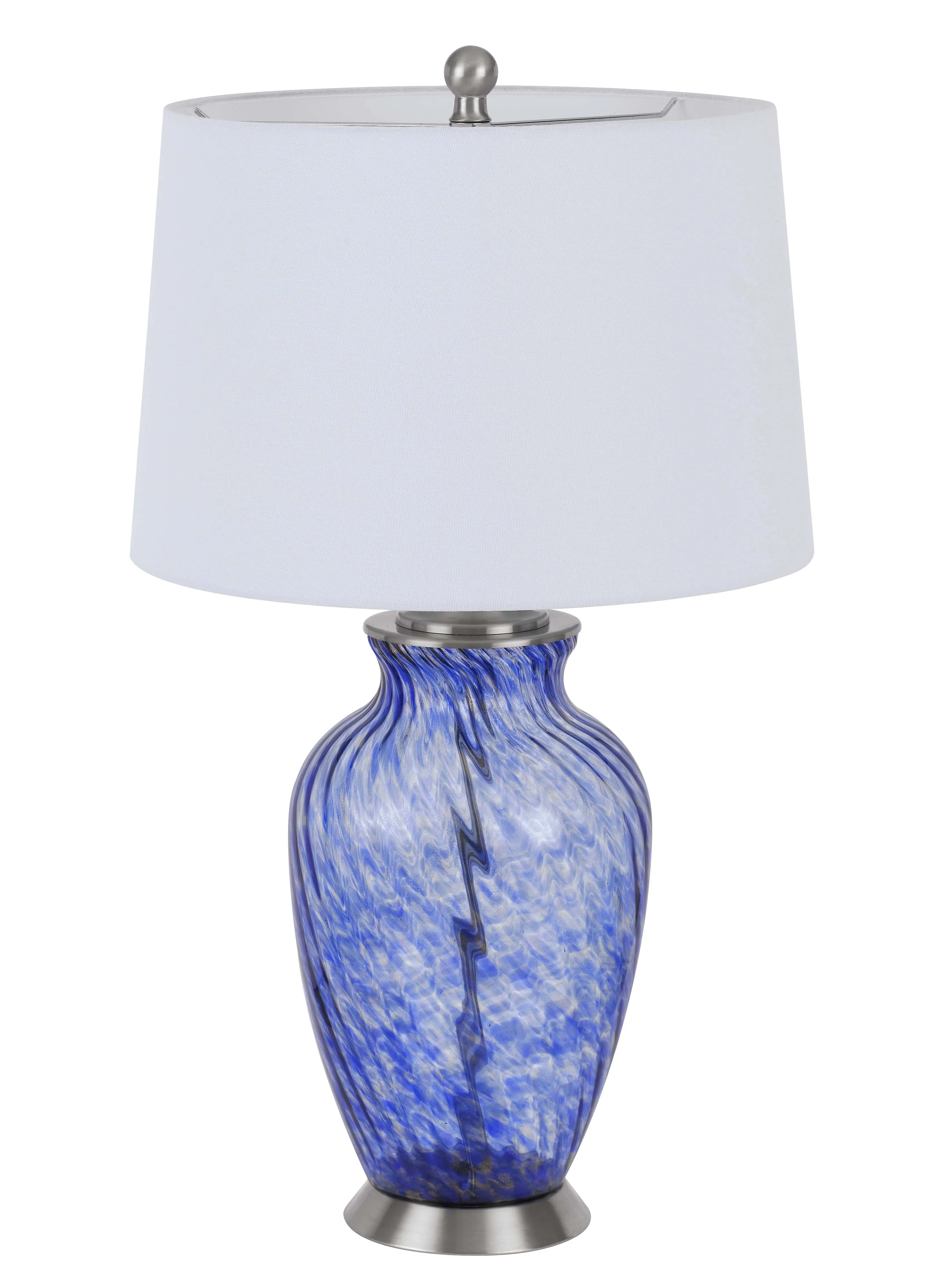150w 3 Way Ashland Glass Table Lamp With Hardback Taper Drum Fabric Shade