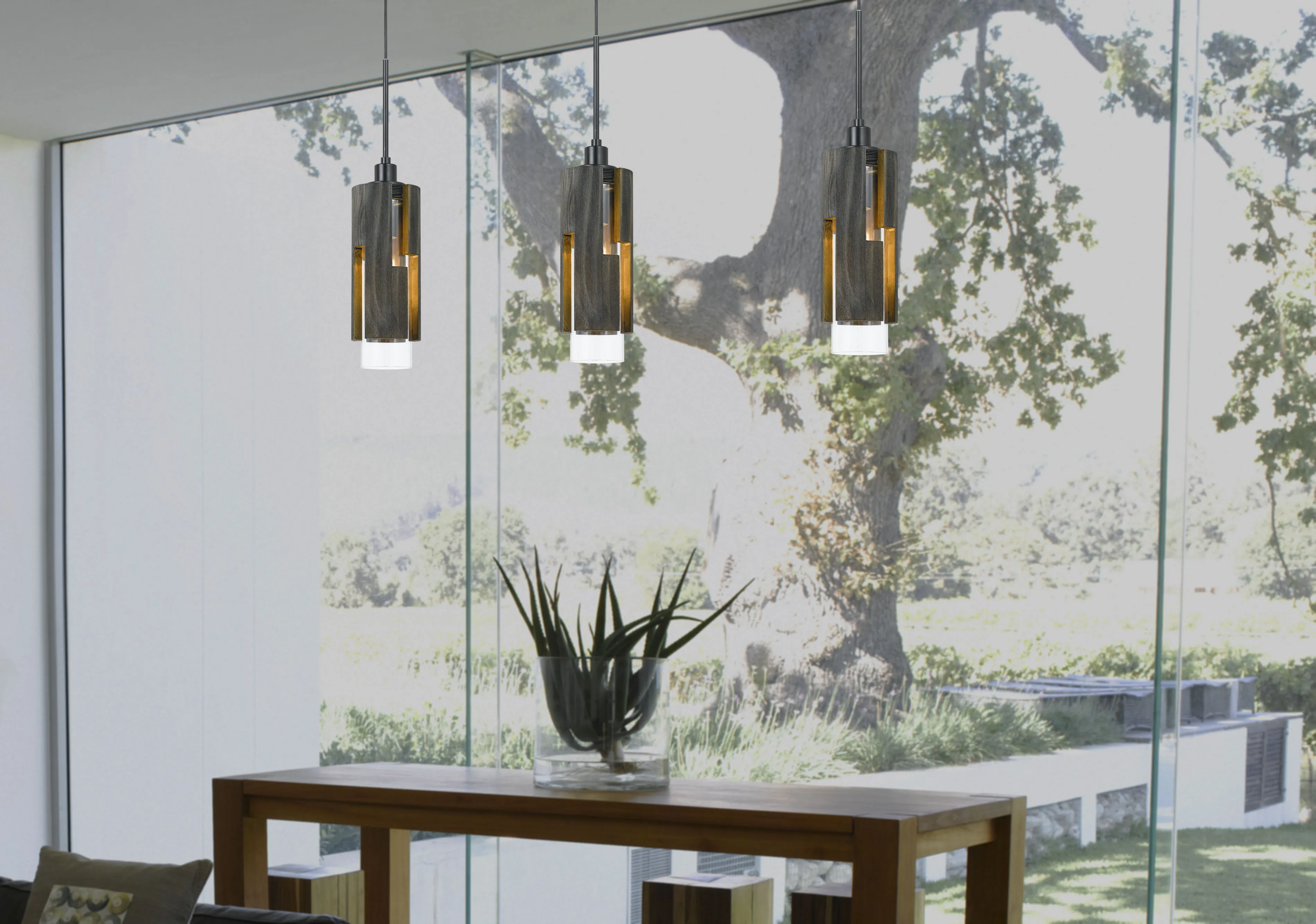 Features Pendant, Glass, Wood