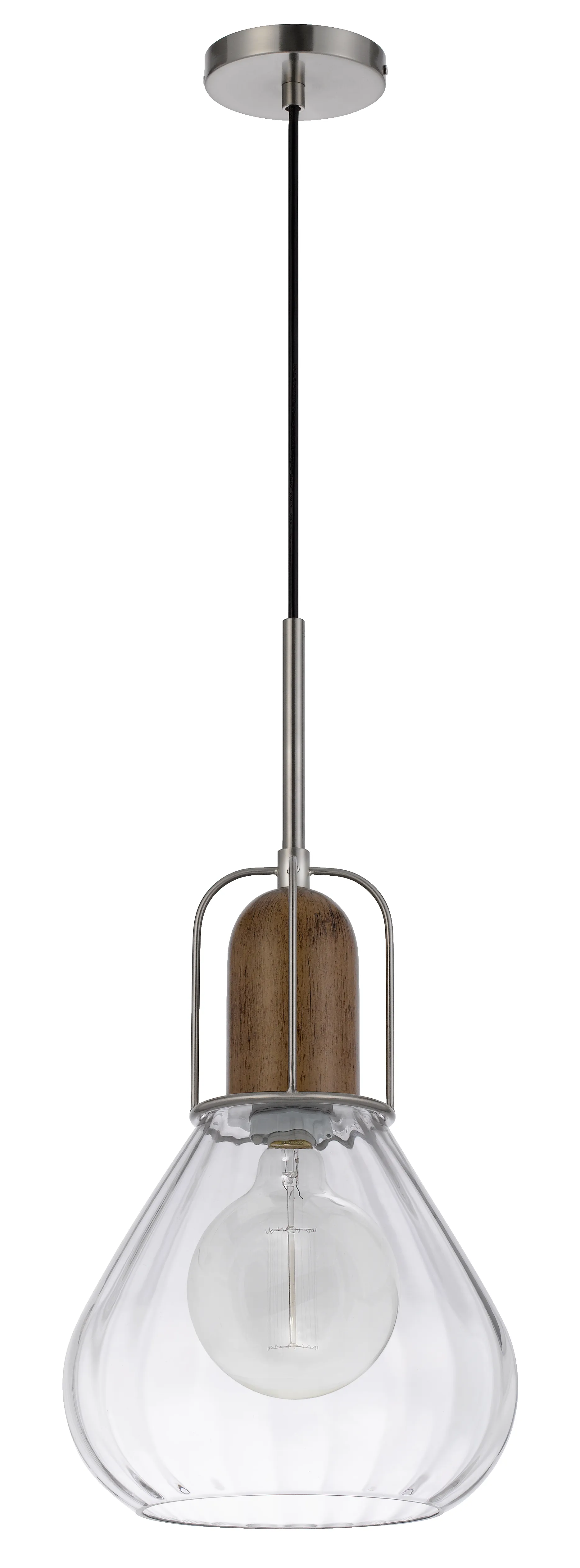 60w Rochelle Metal Rubber Wood Mini Glass Pendant