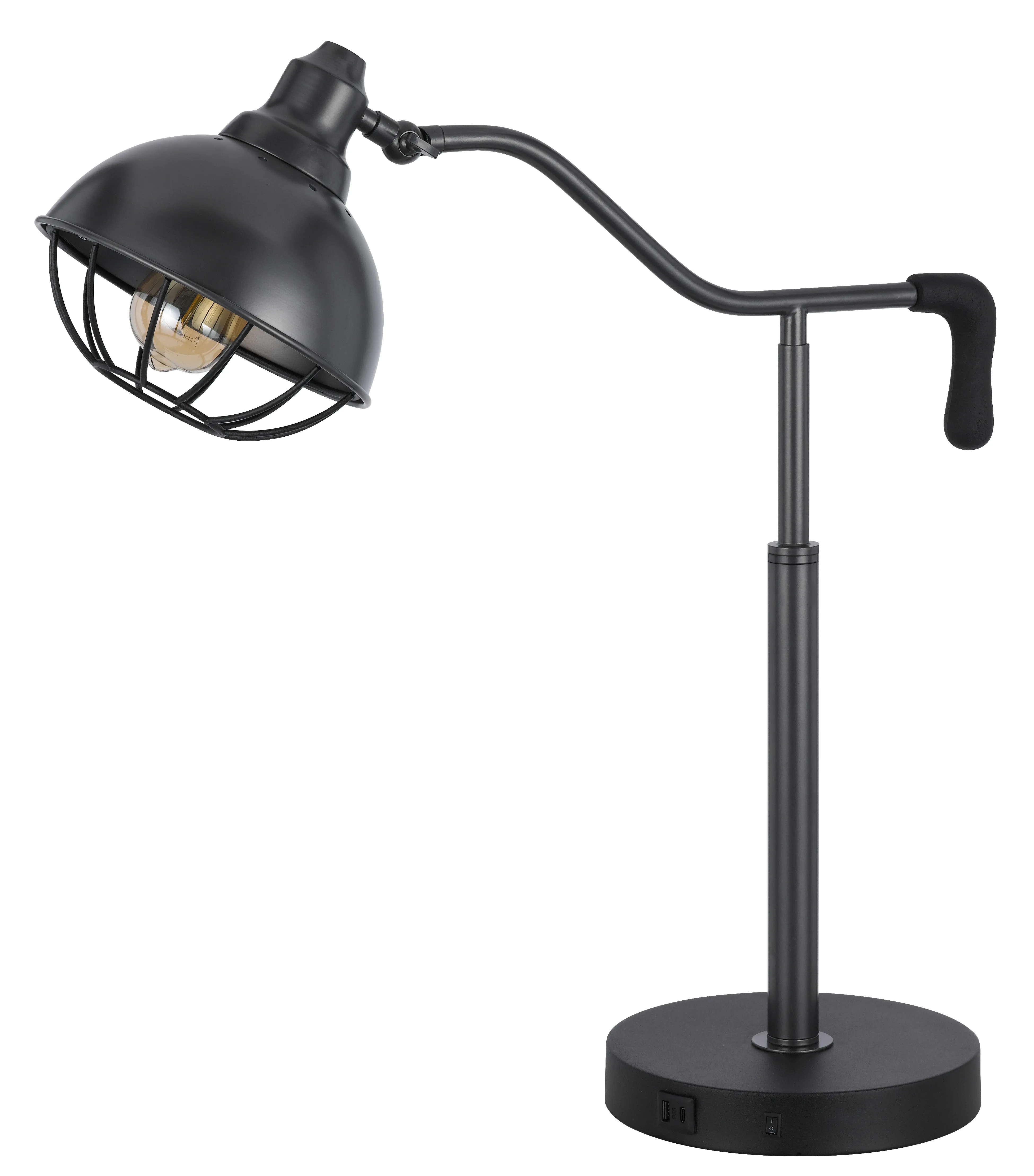 60w Taloga Metal Desk Lamp With Adjustable Caged Shade And 1 USB And 1 USB C Charging Outlets.(Bulb Not Included)