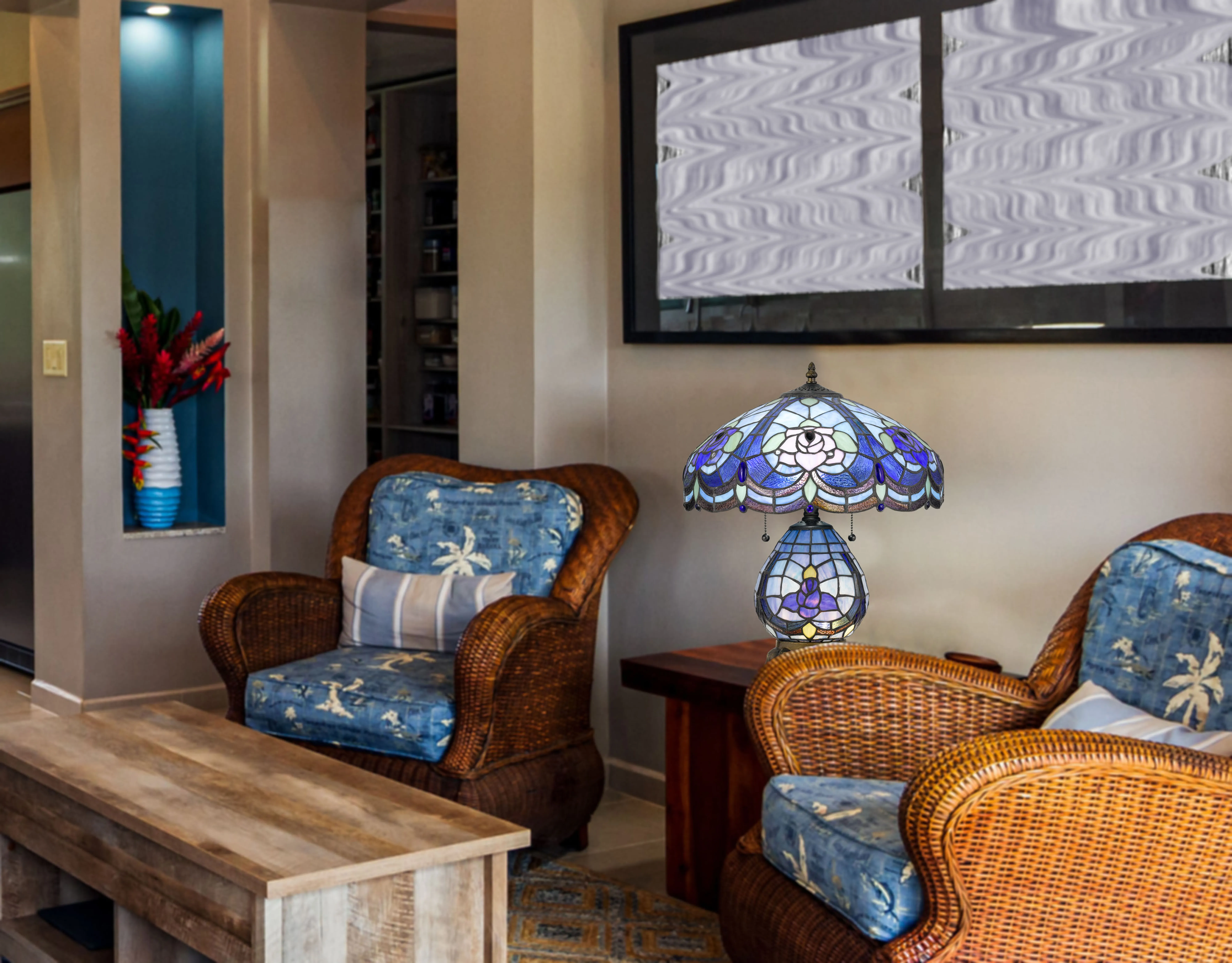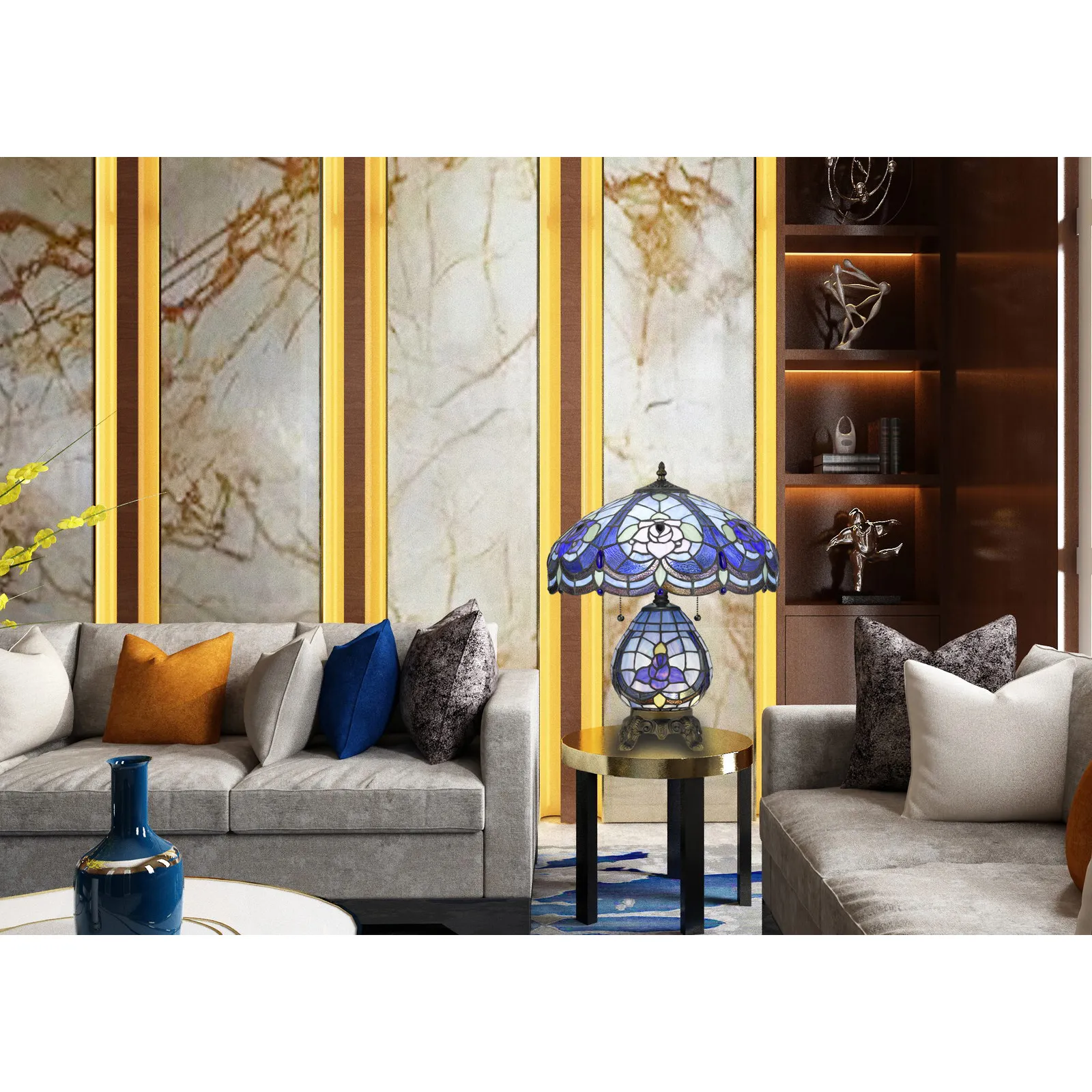 60w X 2 Tiffany Table Lamp With 7w Night Light