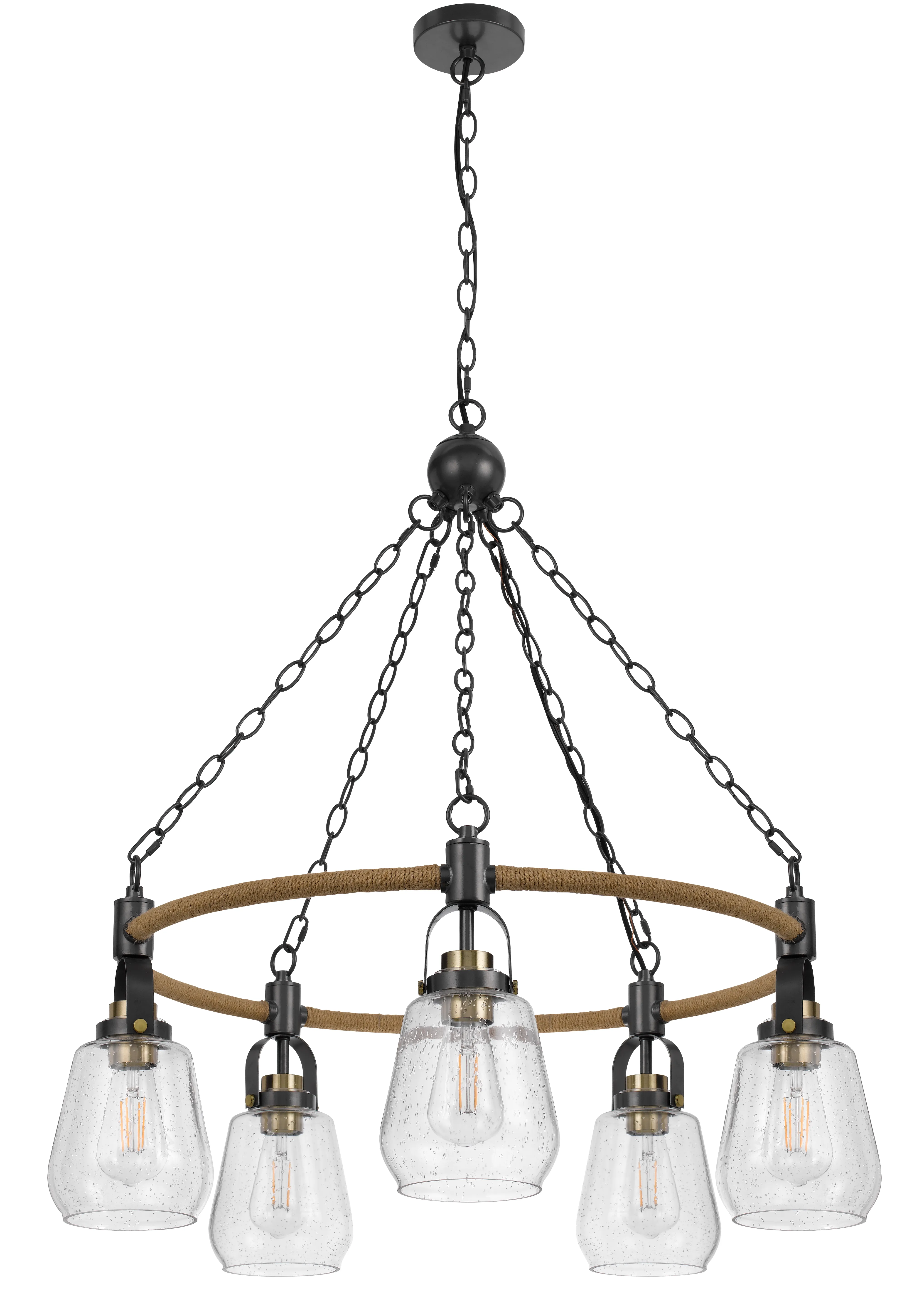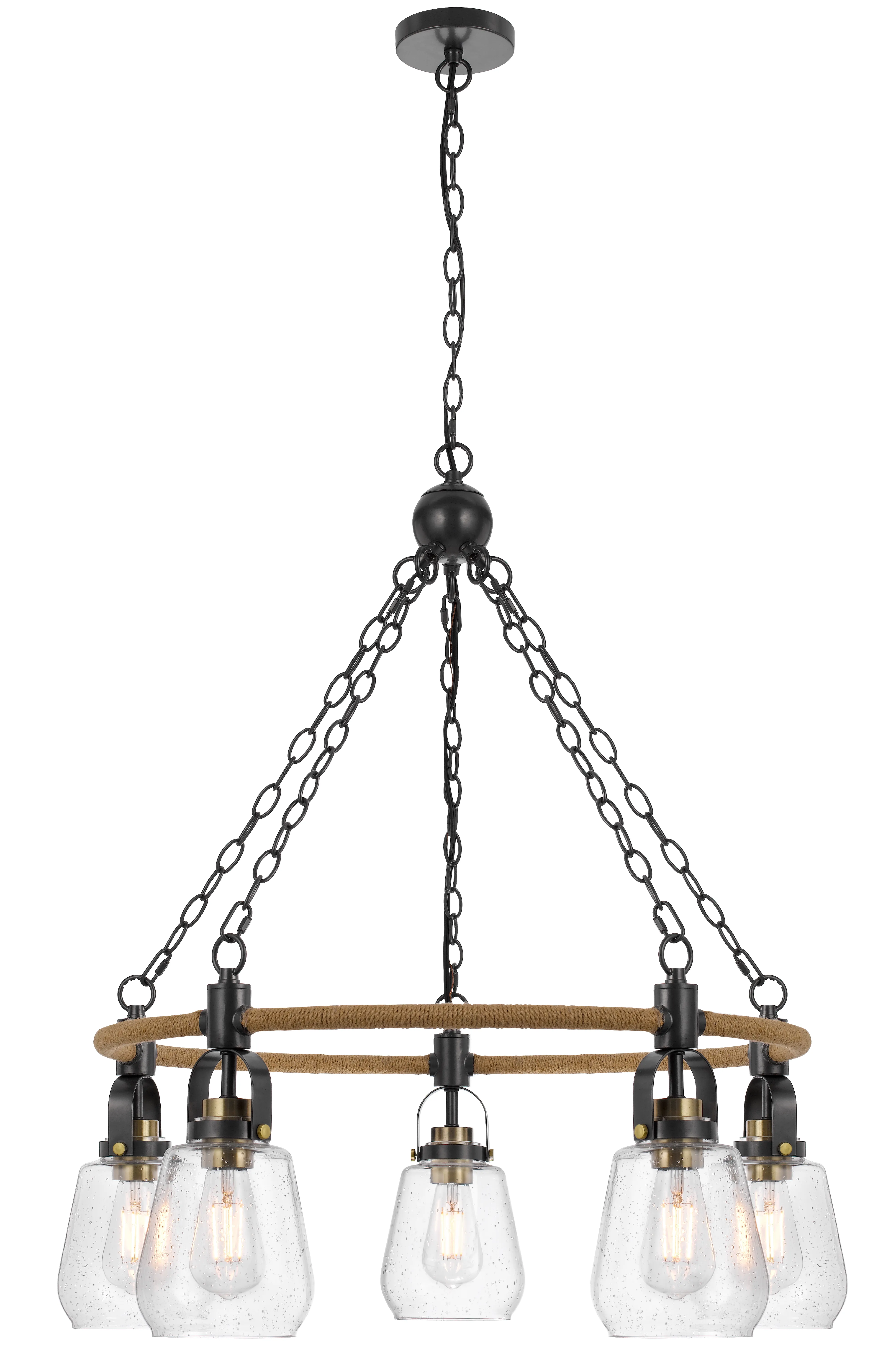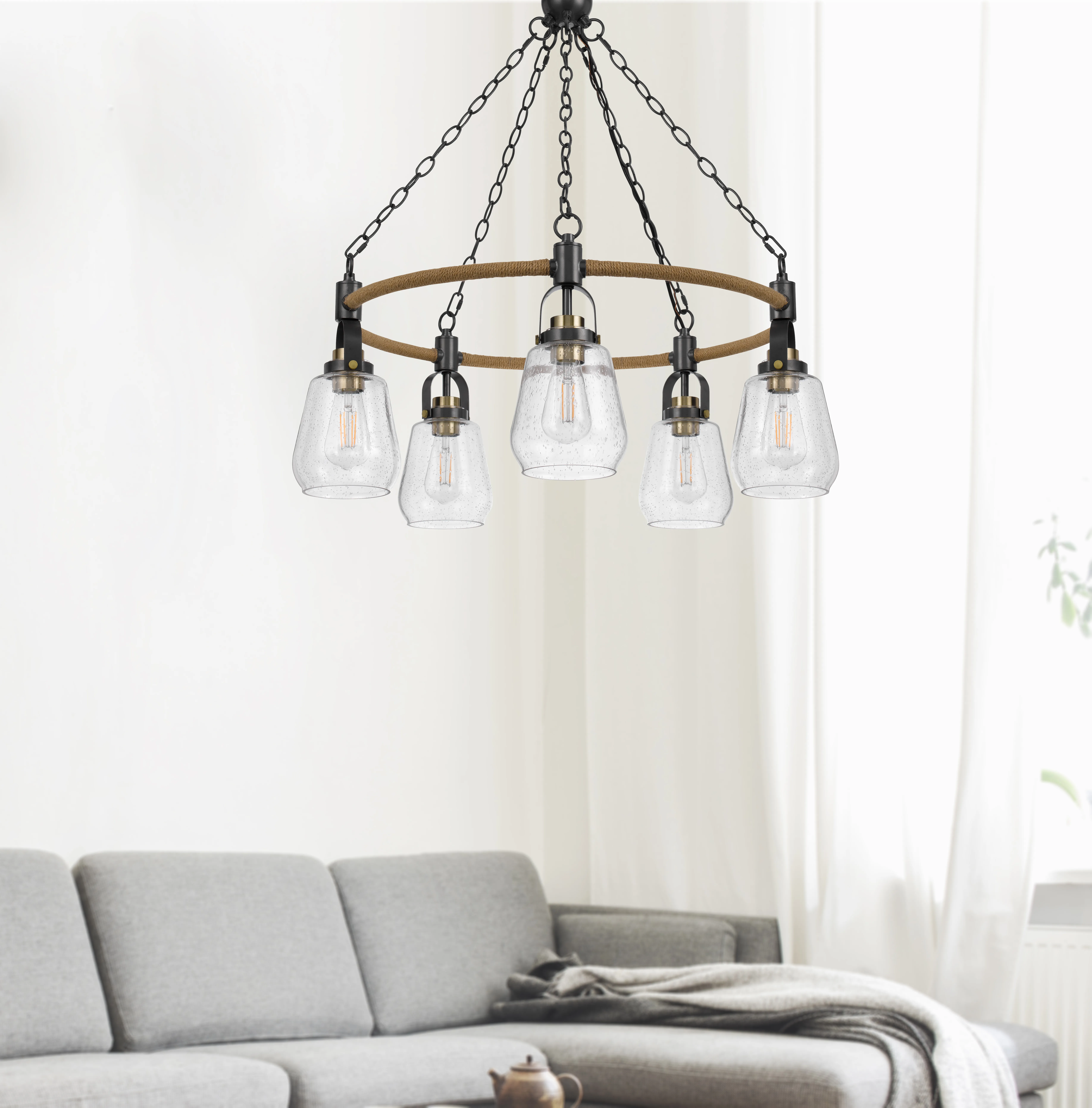 60w X 5 Kavala Metal Chandelier With Burlap Accent And Glass Shades