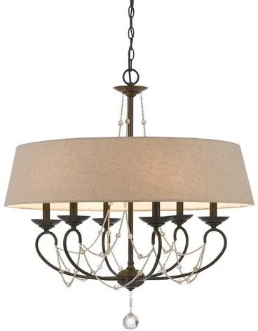 60W x 8 Dawson 8 light chandelier with burlap shade and crystal accents