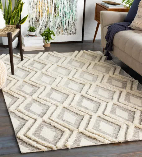 Our rugs from the Cherokee Collection feature striking global inspired designs that endure at the forefront of contemporary trends. With their hand tufted construction, these rugs offer an affordable alternative to other handmade constructions while perserving the same natural demeanor and charm. Made with Wool in India, and has High Pile. Spot Clean Only, One Year Limited Warranty.