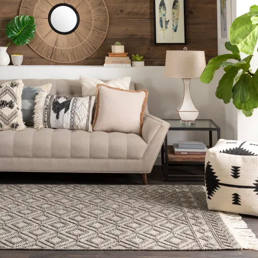 Our rugs from the Farmhouse Tassels Collection feature striking global inspired designs that endure at the forefront of contemporary trends. The meticulously woven construction of these pieces boasts durability and will provide natural charm into your decor space. Made with Wool, Cotton in India, and has No Pile. Spot Clean Only, One Year Limited Warranty.