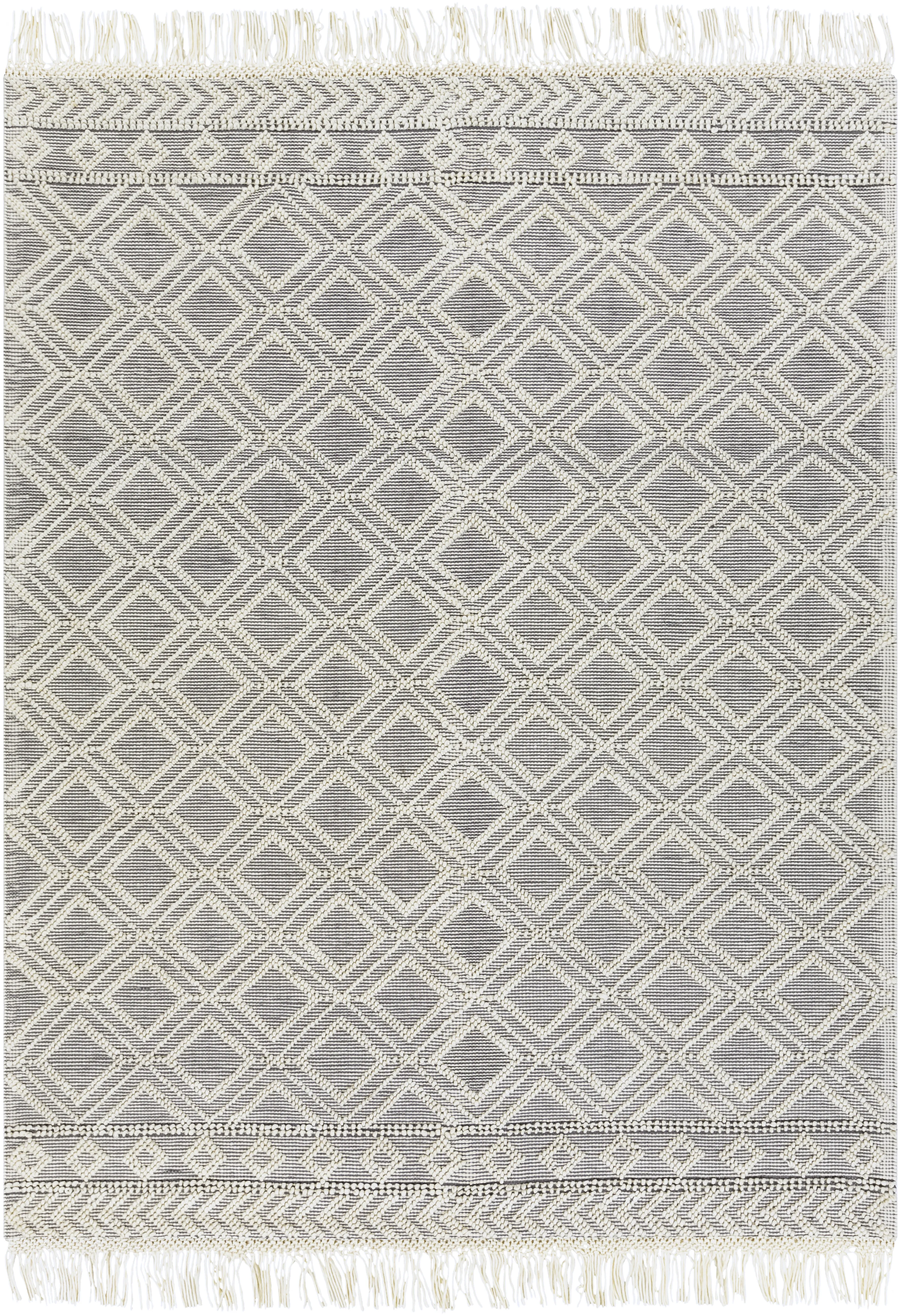 Our rugs from the Farmhouse Tassels Collection feature striking global inspired designs that endure at the forefront of contemporary trends. The meticulously woven construction of these pieces boasts durability and will provide natural charm into your decor space. Made with Wool, Cotton in India, and has No Pile. Spot Clean Only, One Year Limited Warranty.