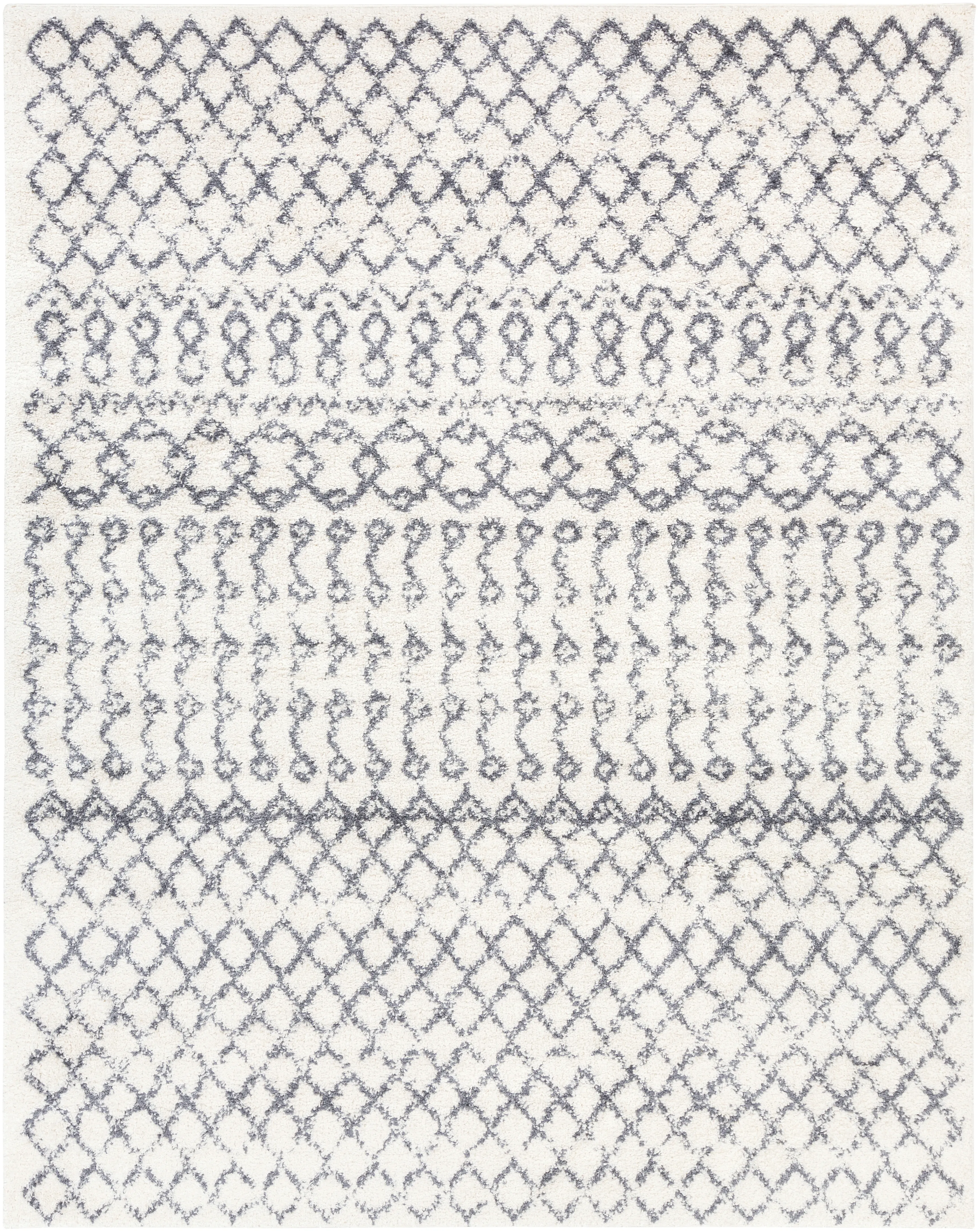 Our rugs from the Maroc shag Collection feature striking global inspired designs that endure at the forefront of contemporary trends. The meticulously woven construction of these pieces boasts durability and will provide natural charm into your decor space. Made with Polypropylene, Polyester in Turkey, and has Plush Pile. Spot Clean Only, One Year Limited Warranty.