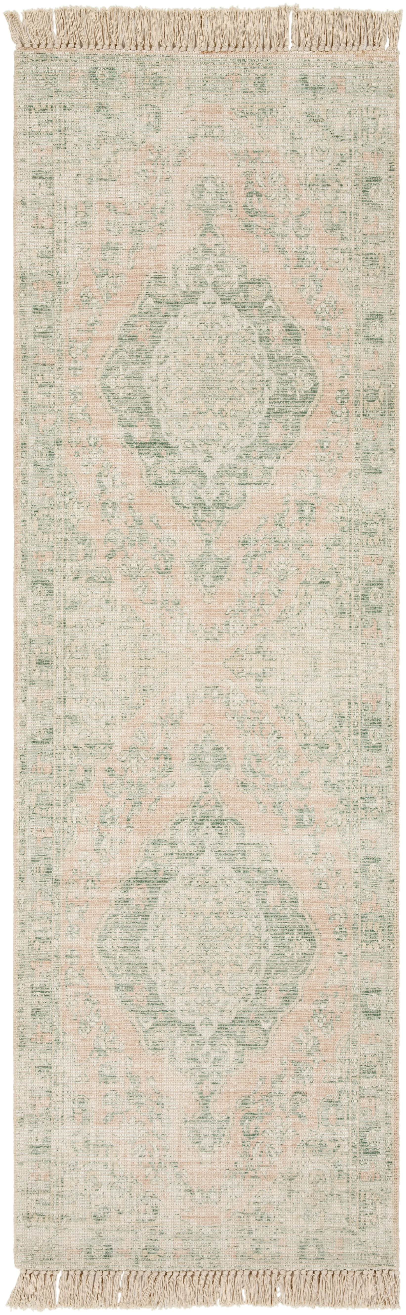 The rugs from the Zainab Collection blend vintage and contemporary thought on style, creating timeless designs that endure at the forefront of prominent decor trends. The meticulously woven construction of these pieces boasts durability and will provide natural charm into your decor space. Made with Cotton, Polyester in India, and has No Pile. Spot Clean Only, One Year Limited Warranty.