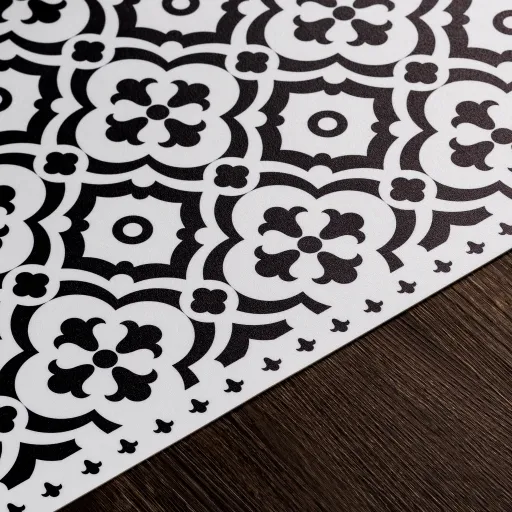 The Vinilo Collection showcases traditional inspired designs that exemplify timeless styles of elegance, comfort, and sophistication. The meticulously woven construction of these pieces boasts durability and will provide natural charm into your decor space. Made with Vinyl in U.S.A., and has No Pile. Spot Clean Only, One Year Limited Warranty.