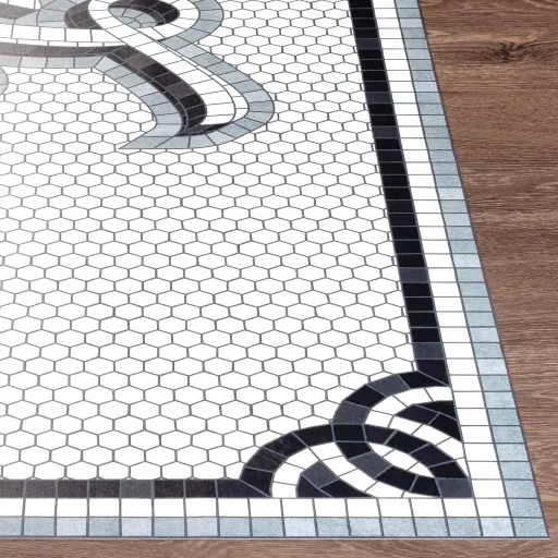 The simplistic yet compelling rugs from the Vinilo Collection effortlessly serve as the exemplar representation of modern decor. The meticulously woven construction of these pieces boasts durability and will provide natural charm into your decor space. Made with Vinyl in U.S.A., and has No Pile. Spot Clean Only, One Year Limited Warranty.