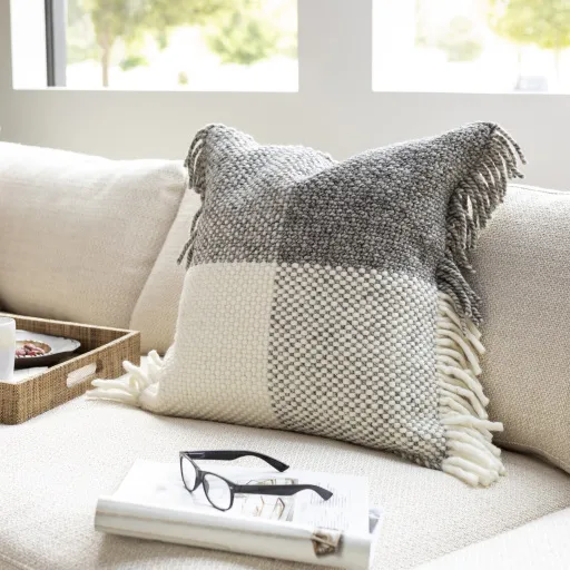 Features Square, Country of Origin: India, Hand Woven, Cotton, Wool, Fringe