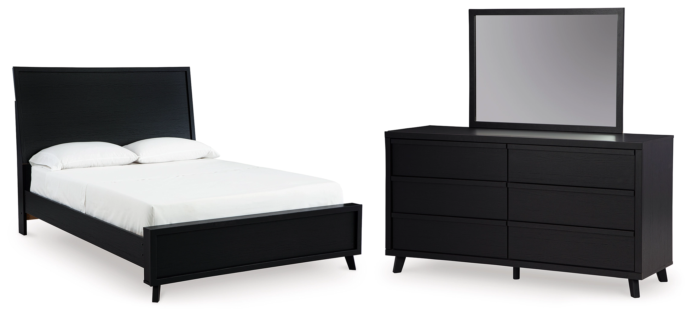 Sophisticated style for the savvy shopper. This bedroom package prioritizes affordable, on-trend design. Its subtle replicated texture recalls the natural beauty of wood, highlighting the clean-lined styling. And a matte black finish savvily suits different approaches to modern aesthetics.