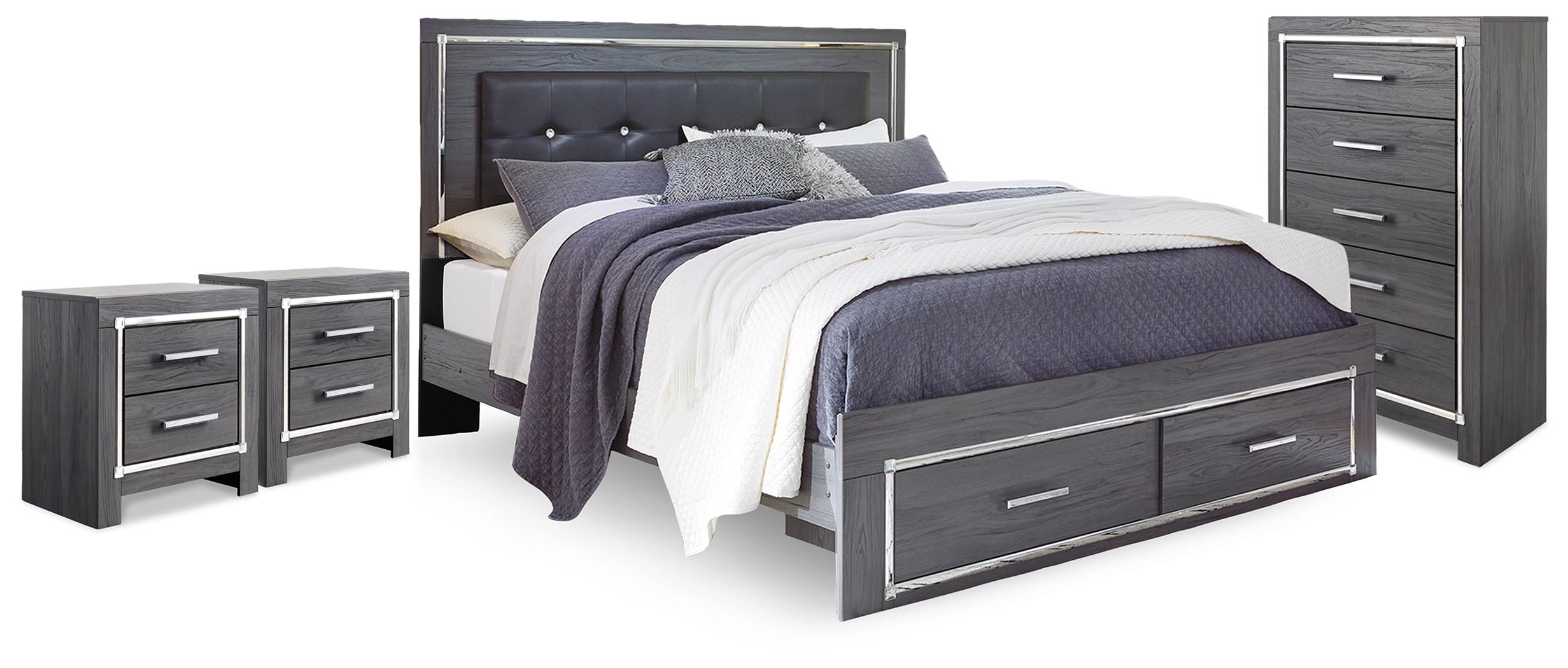 Lodanna King Panel Storage Bed, Chest and 2 Nightstands