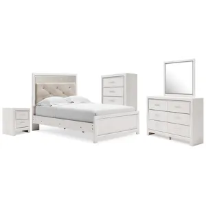 Realyn King Panel Upholstered Bed, Dresser, Mirror and Chest