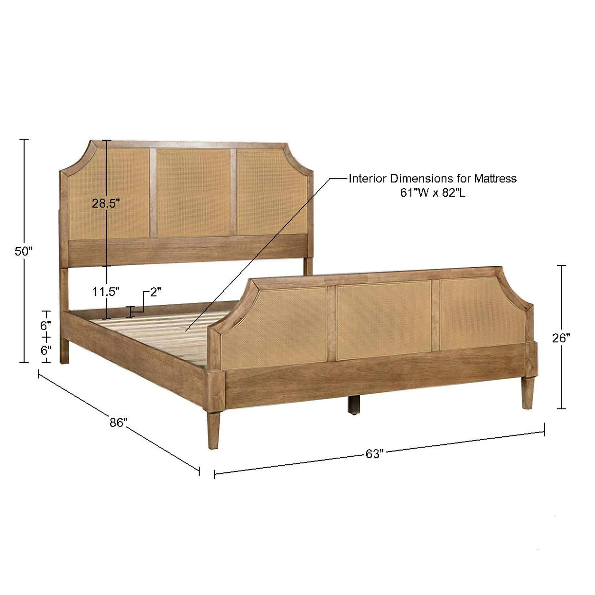 - Footboard: 63"W x 26"H x 2.5"T