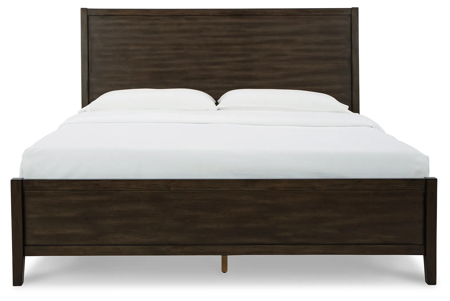 For fans of an uncomplicated mid-century modern vibe, this king panel bed clearly steals the show. Its finish balances a rich warm brown undertone with a hint of gray for a contemporary aesthetic with wonderful character. The lay-back panel headboard design adds subtle flair.