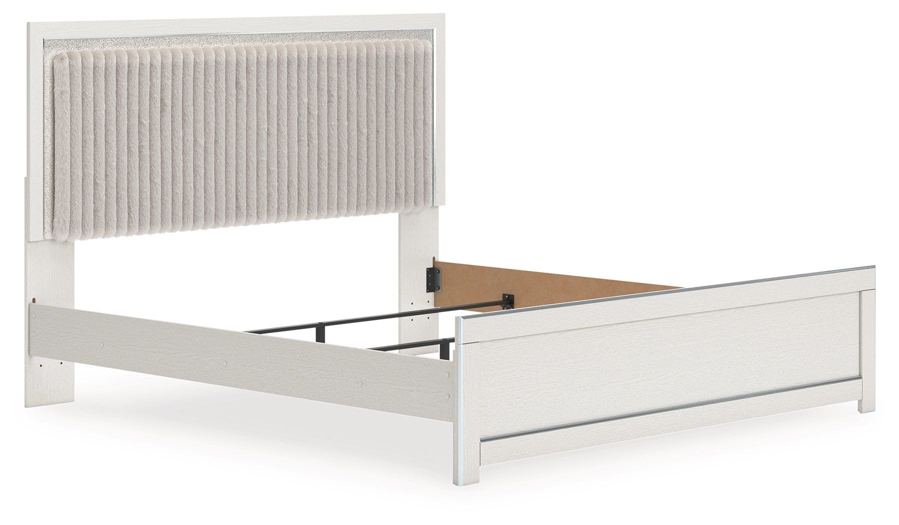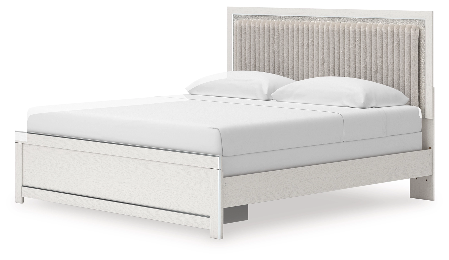 If glitz and glam are your jam, you’re gonna love this king upholstered panel bed. Gleaming glitter and dazzling chrome-tone touches are paired with tufted gray faux fur for a stunning pop of pizzazz. Loaded with chic flair and serious sparkle, it's a simply splendid way to wake up your inner sanctum’s style.
