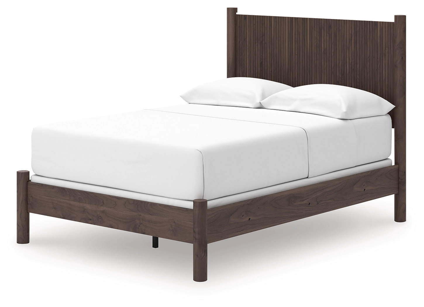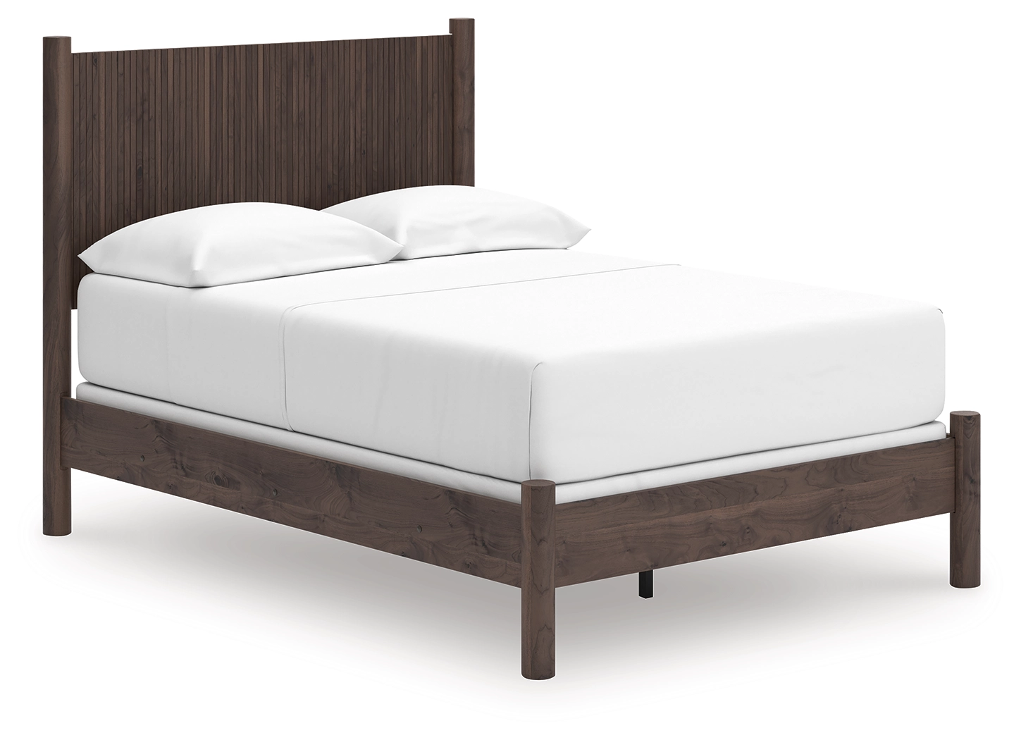 Crafted with both form and function in mind, this full panel bed brings a dash of retro-cool character to your modern boho aesthetic. Its reeded headboard adds an on-trend touch to the classic silhouette. Warmly welcoming with a rich brown finish, the bed pairs well with muted hues, earth tones and other neutrals alike. What a refined take on easygoing style.