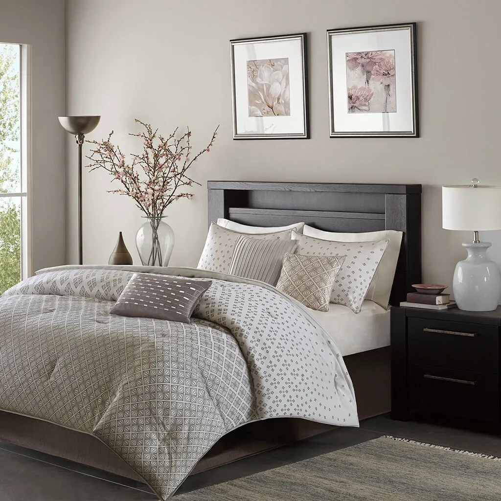 Comforter/Sham: 100% polyester jacquard, 100% brushed polyester reverse, 270g/m2 polyester filling