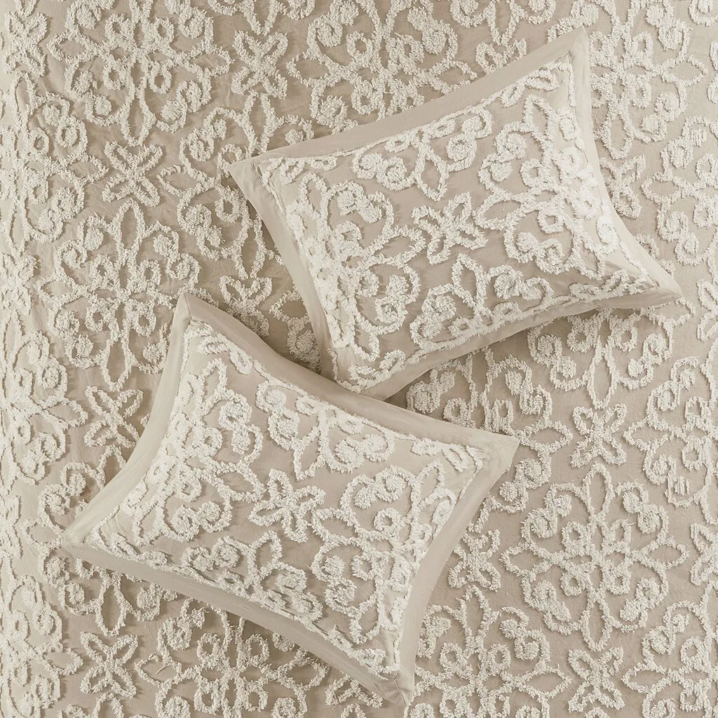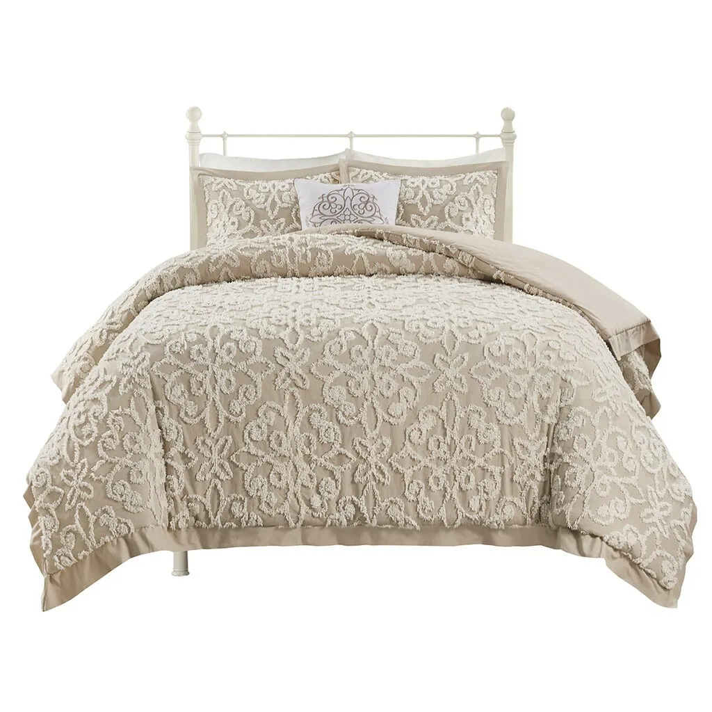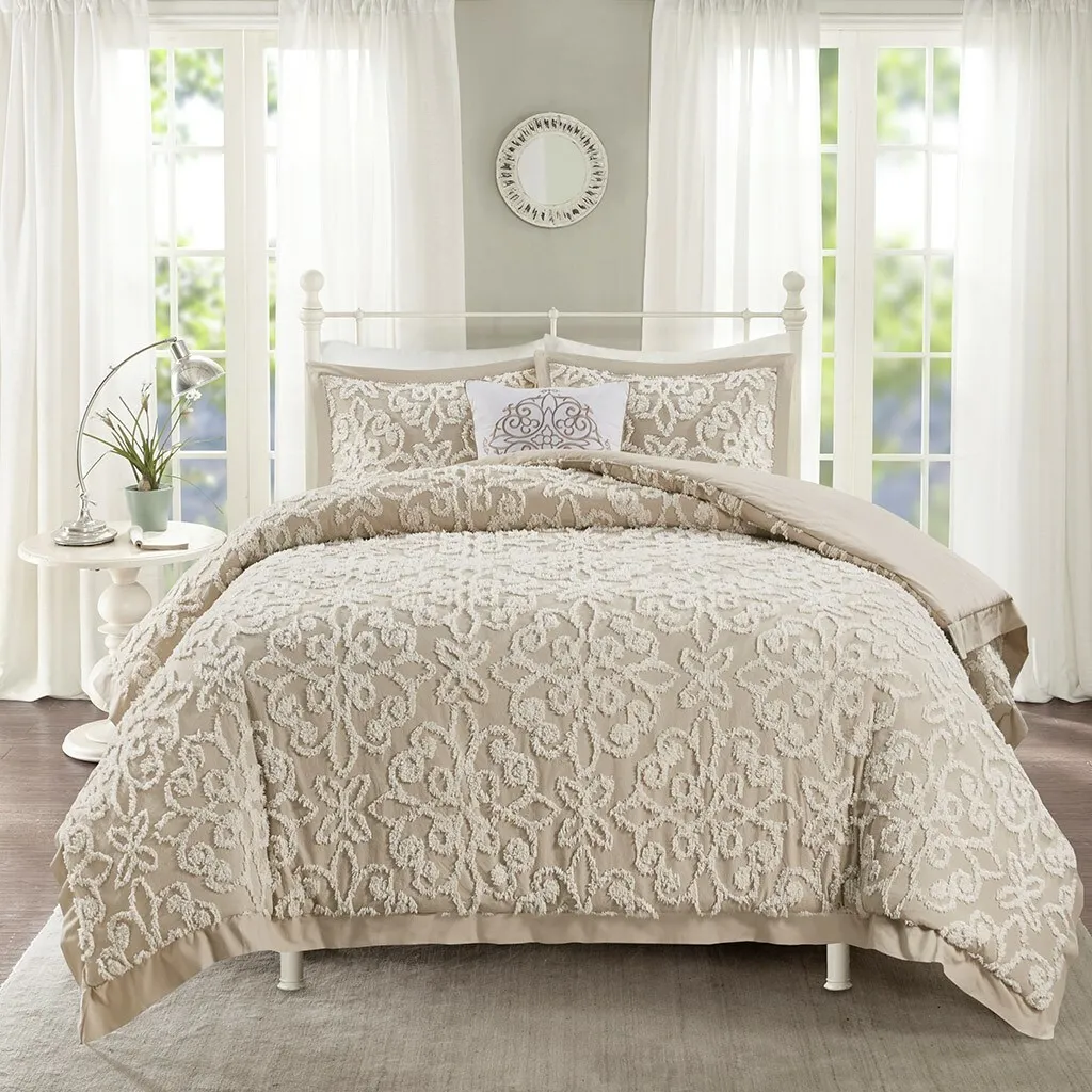 Sabrina 4 Piece Tufted Chenille King/Cal King Comforter Set - Taupe
