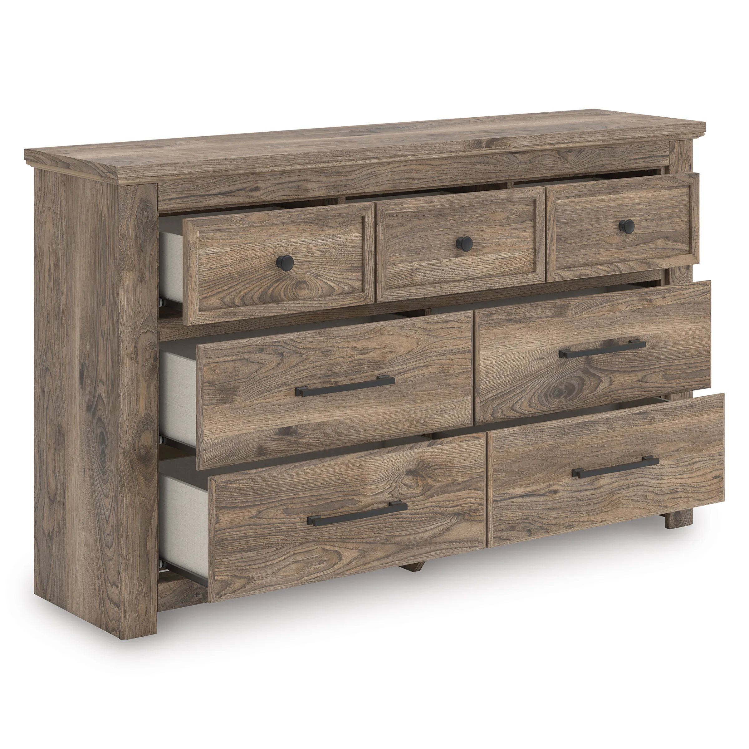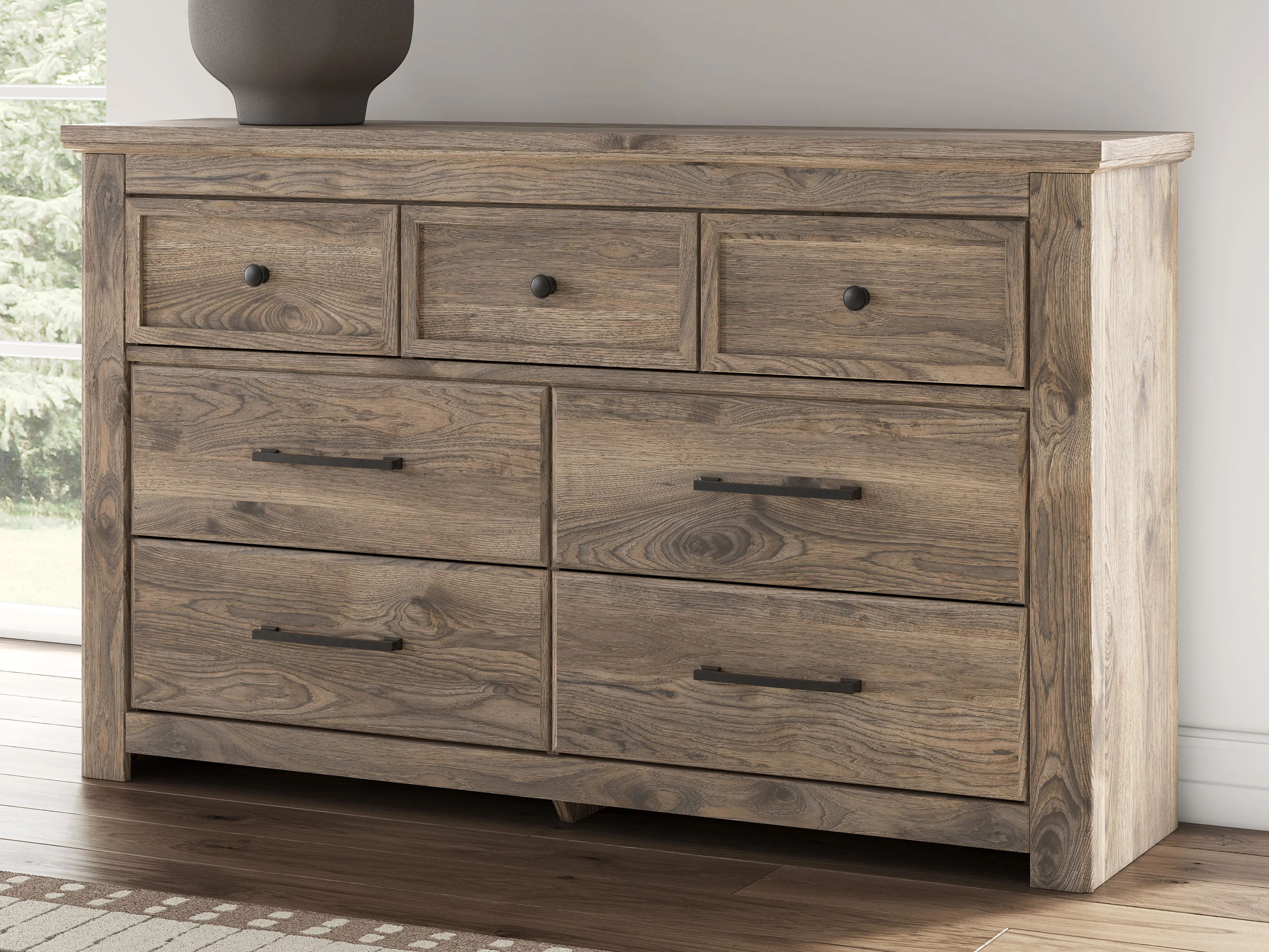 Classically chic. This dresser marries traditional design with modern accents. Its deep brown finish recalls the authentic touch of hickory grain for a rich look and feel. Assorted drawers neatly store your essentials in charming fashion. Sincere in its styling, this piece sets the scene for a warm, welcoming vibe in your bedroom.