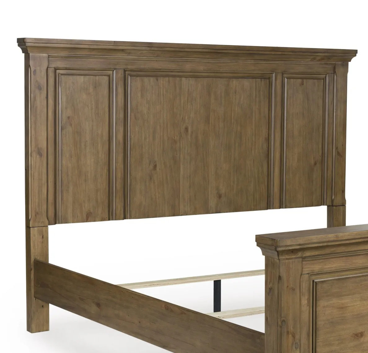 This queen panel headboard is made with pine solids, veneer and MDF substrate. Pairs with other items in the series to make a bed kit.