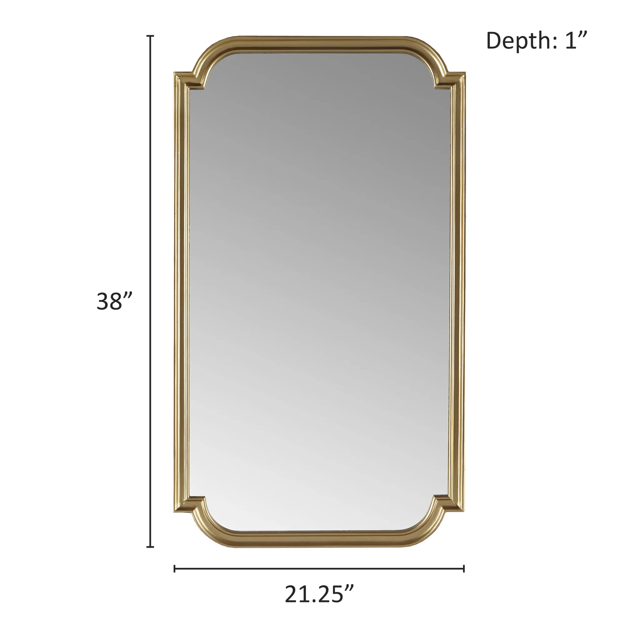 Adelaide Wall Mirror from Madison Park is a timeless piece that adds elegance to any space. With its rectangular shape and scalloped corners, this mirror is perfect for bedrooms, guest rooms, living rooms, or entryways. The wood frame features a metallic gold finish, adding a glamorous flair to your decor. Crafted with mirrored glass on a sturdy MDF backing, this mirror is built to last. It comes ready to hang with convenient D-ring hangers, and its symmetrical shape allows for versatile hanging options—vertically or horizontally.