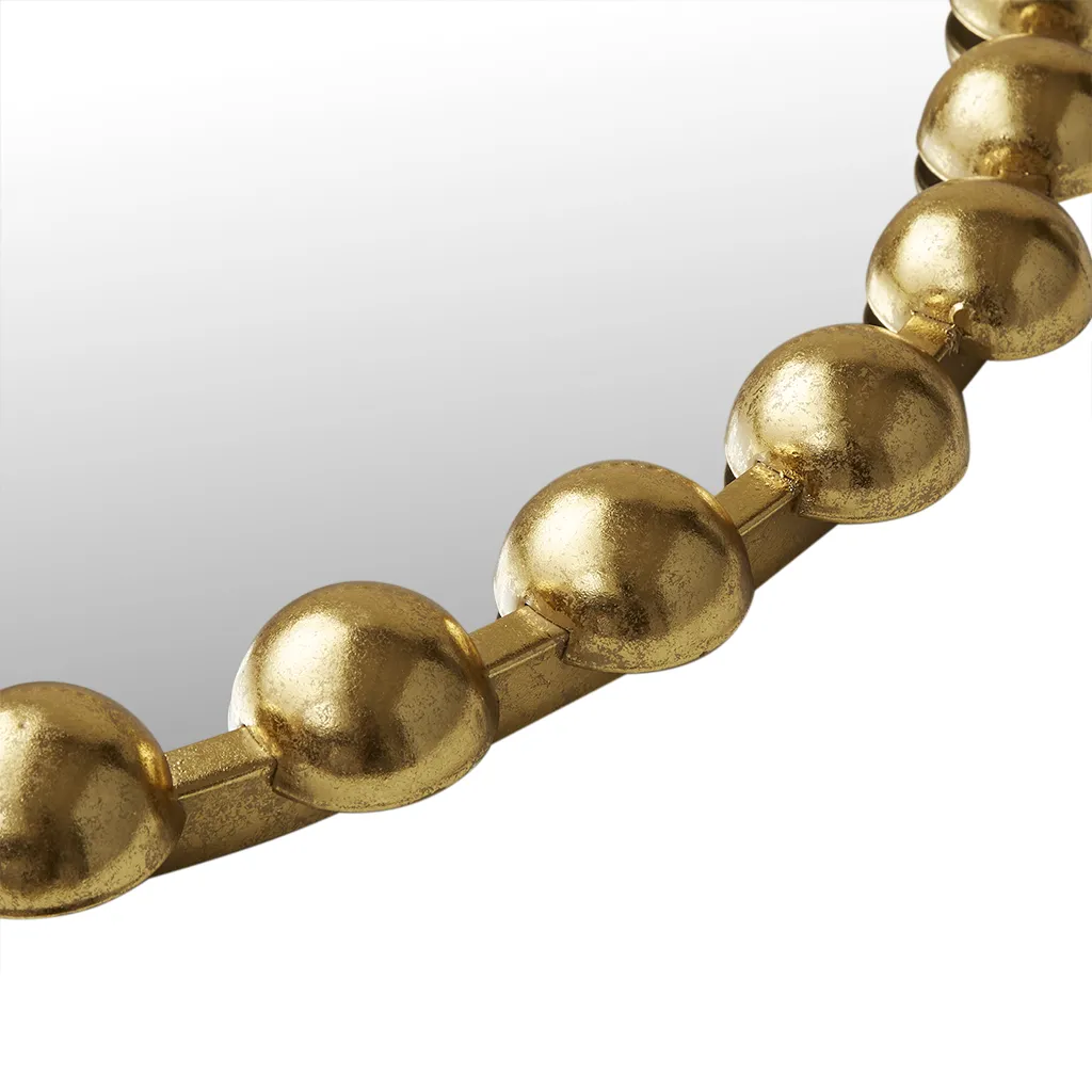 Elevate your decor with the Madison Park Signature Marlowe 27" Round Gold Wall Mirror. This decorative mirror features a beaded frame with a hand-applied antique gold finish, adding vintage charm and luxury. Crafted with high-definition glass, it ensures a clear, distortion-free reflection. Ready to hang with pre-installed hangers, this medium-sized round mirror makes a wall decor statement in any small space, from the vanity to the living room, bedroom, or entryway. Shop now to bring timeless elegance to your home.
