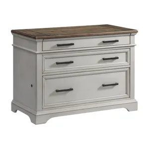 Drake Home Office offers a classic old world style, all case pieces have rustic oak plank board tops. This two-toned finish combines a relaxed antiqued white finish with warm rustic oak patina. Solidly constructed and designed to function the way we work today.
