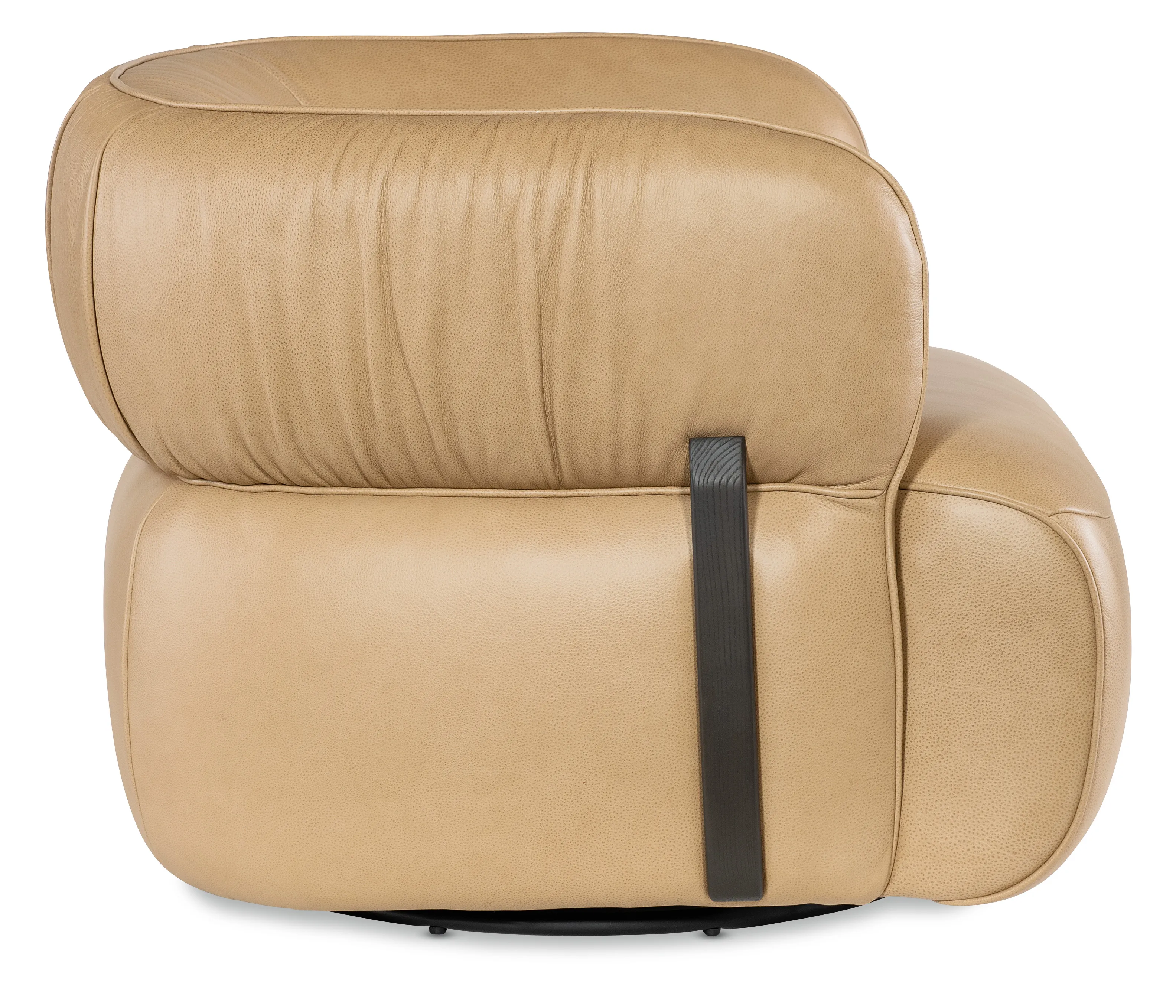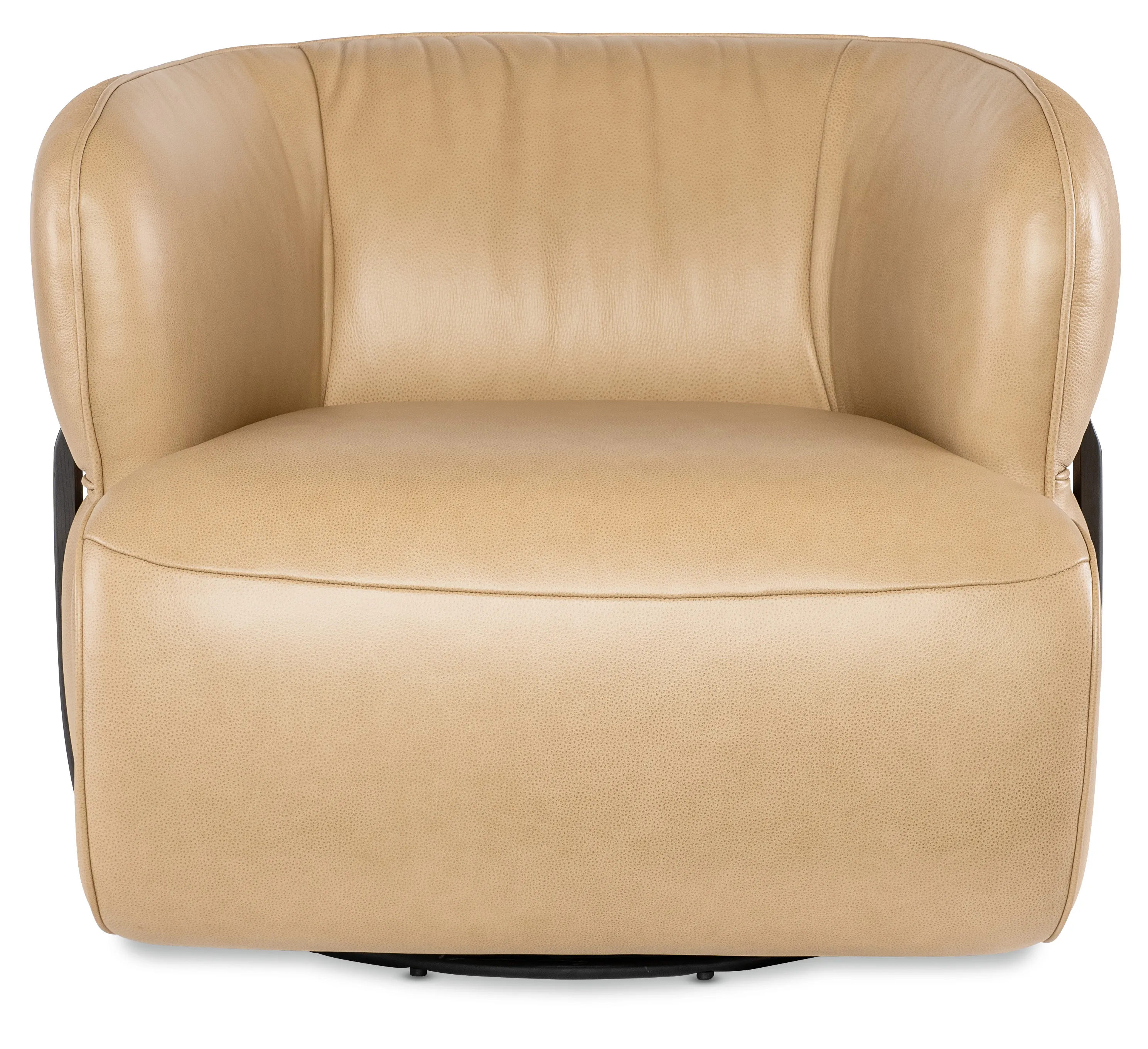 The McGuire Swivel Chair combines modern transitional style with functionality. Upholstered in premium semi-aniline leather, the chair features a barrel design, memory swivel function, and dark walnut accents. Ideal for living rooms, it offers both luxury and practicality with a comfortable foam core and sleek design.