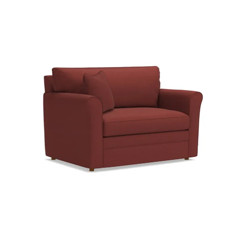 Turn any room into a stylish and functional guest room with the Leah Twin Sleep Chair. Its sleek profile is perfect for smaller spaces, yet it opens up to become a super comfortable twin bed, complete with a Supreme ComfortTM quilted innerspring mattress measuring 5.5” thick. By day, this sleeper is a true beauty too, with curving rolled arms, welt trim and a patented ComfortCore® cushion that provides optimum support for a long or short sit. Includes one 18” accent pillow.