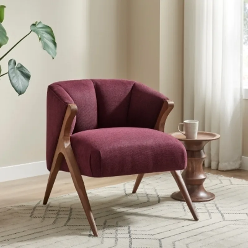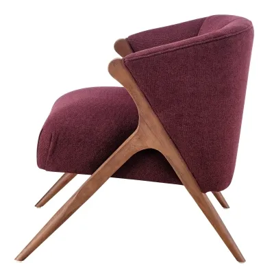 The Florence Accent Chair in maroon tone fabric is a chic blend of retro inspiration and modern comfort, now refreshed with a rich brown frame finish due to overwhelming popularity. The deep maroon upholstery brings warmth and sophistication, while the sculpted wooden frame adds an elegant mid-century flair. Designed with a curved backrest and plush seating, it invites both relaxation and style into any space. Perfect as a statement piece in a living room, lounge, or office, the Florence chair balances timeless design with updated details for today’s interiors. Fully assembled. Available in Havana Maroon, Havana Green, Havana Cream and Shearling Beige.