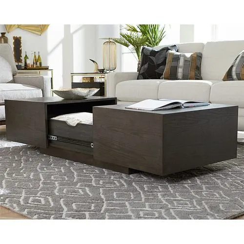 Boldly contemporary design elements inspired by retro forms and expressed in beautiful flat cut white oak in a clear, fumed blacked finish with low sheen. Essence is a true expression of urban style with minimalist hints, and wonderful scale. Primary design elements include external steel frames in a dull, warm gilded finish with slight surface antiquing. The cabinets are suspended by standoffs and seem to float in air inside the external steel frames. All corners are mitered, and the drawers miter fitted into the face of the cabinets for a beautiful, seamless look. The effect of the external frame and mitred case elements is to create a light look, and minimum of solid mass. Storage and display is featured in all pieces, plus selected accommodation for electronics. A contemporary, sophisticated, urban look in fashionable form and finish, Essence is completely modern and will be at home in any contemporary décor.