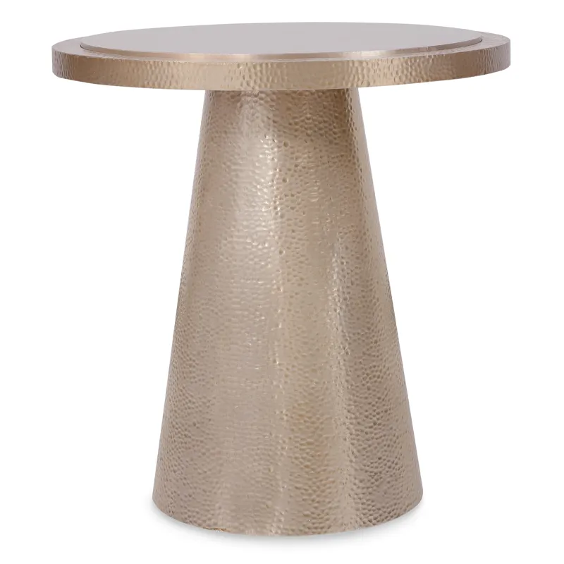 Add a touch of modern elegance to your living room with the Archives Spot Table. This round accent table features a unique metal-cladding with a hammered texture, finished in a luxurious Satin Brass. The refined craftsmanship and rich materials, such as birch veneers and aluminum, offer a timeless appeal. Perfect for any living room space, this table complements a variety of interior styles, bringing both function and luxury to your home decor.