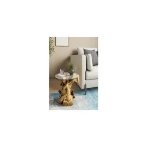 Rego Side Table – The natural beauty and individuality of reclaimed teak roots are on display in the Rego Coffee Table. The sparkling glass top is mounted on a tangle of shapes and will give a unique, organic look to your living room or den. Fully assembled, available in Natural.