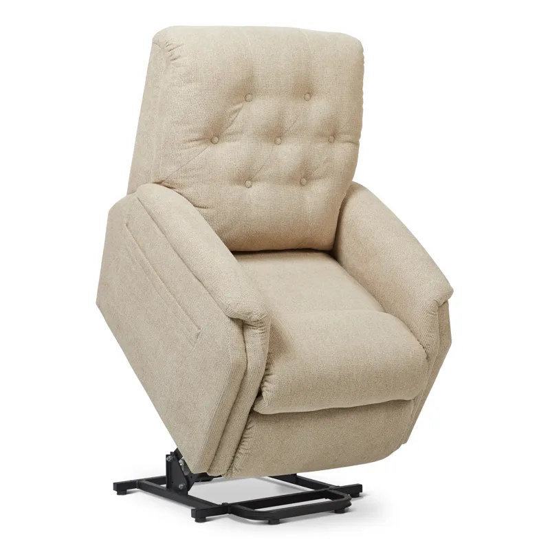 The Billie Bronze Power Lift Recliner provides elegant and empowering comfort. The cozy button-tufted back and rolled arms offer snug support in a petite size. Just press a button to recline or get a helpful lift, then get up with safety and ease!