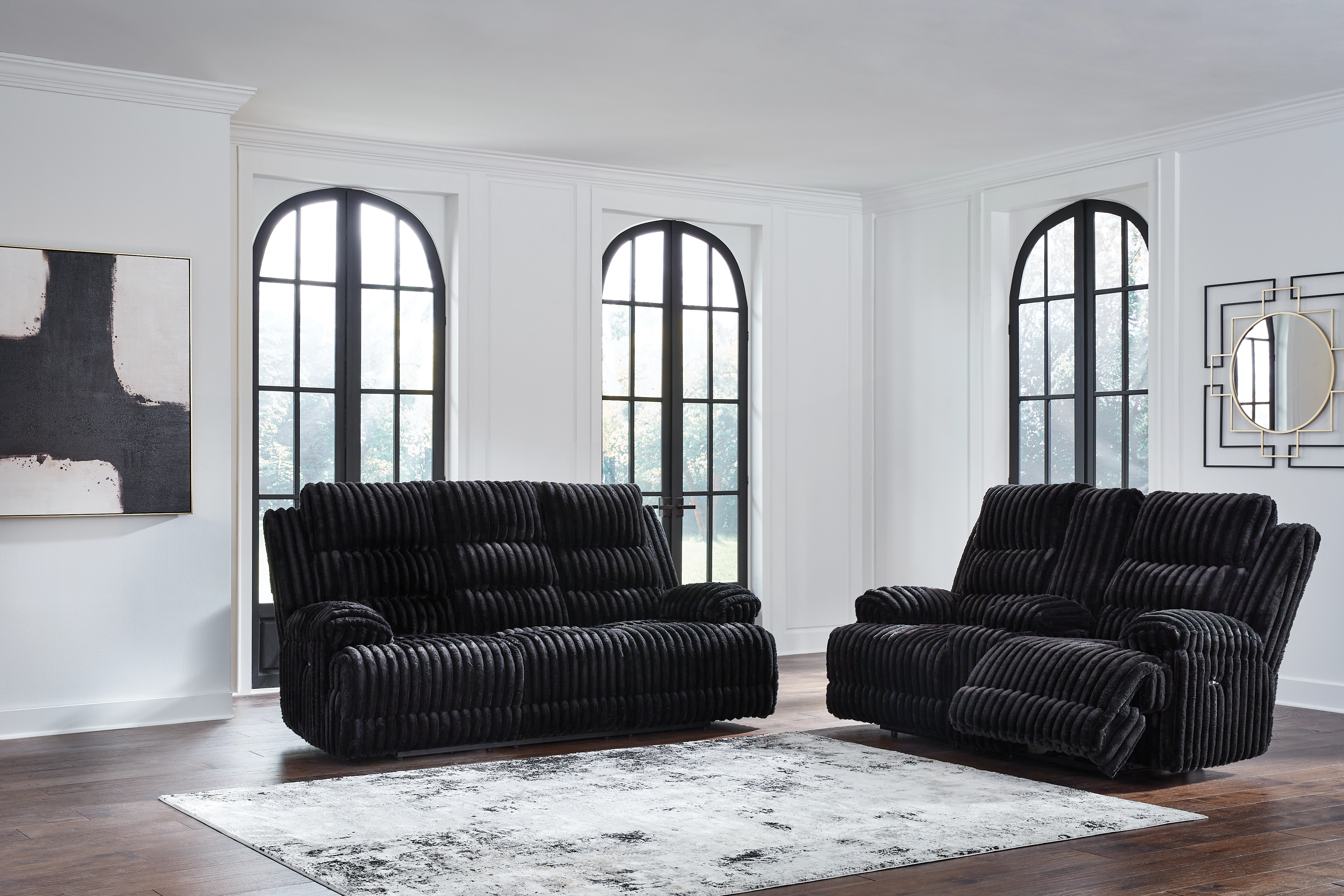 We don’t know about you, but one look at this power reclining seating package makes us want to settle in and never leave. There’s so much to love—we'll start with its cozy corduroy and stylish contemporary design. Did we mention the generous seat and tall back, specially crafted to provide extra support and comfort for broader and taller individuals? And let’s not forget its one-touch reclining and pillowy cushions, offering easy and instant relaxation that feels right at home.