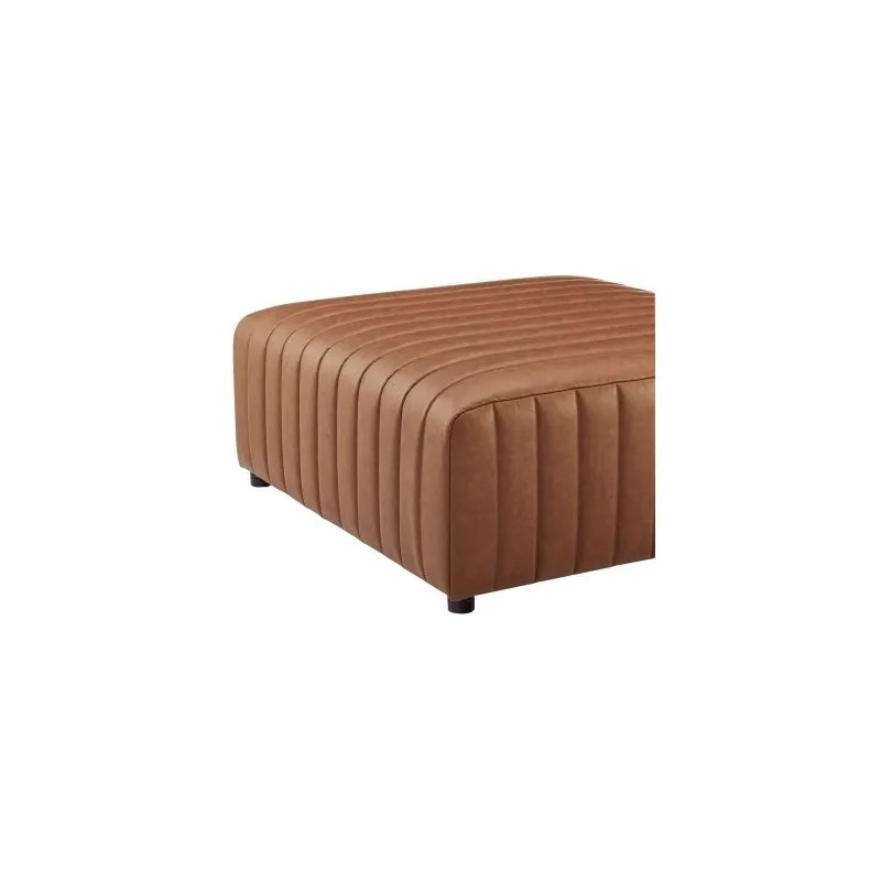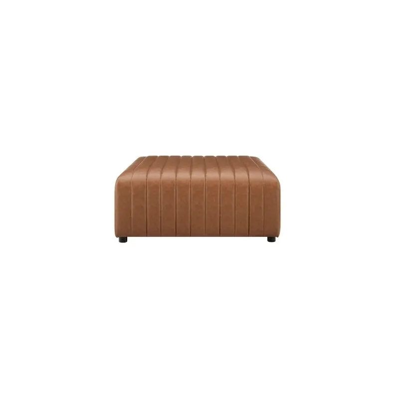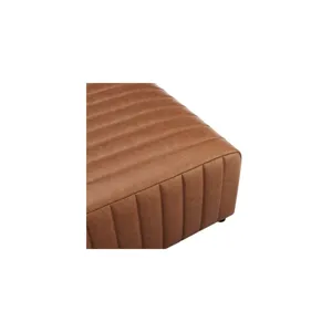 The Harland coffee table brings a sleek, modern touch to a living room. Its bold plinth base showcases stylish channel tufting in vintage cider faux leather, adding a hint of texture. With a spacious 39" wide top, it offers ample surface area for decor or everyday essentials. Easy Assembly. Available in Vintage Cider PU.