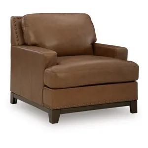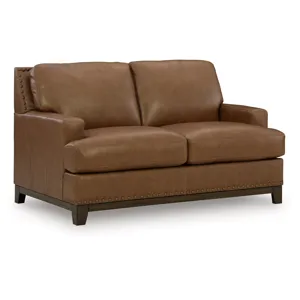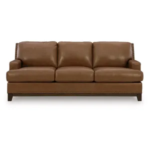 100% top grain leather covers the cushion top; skillfully matched faux leather covers the remaining areas