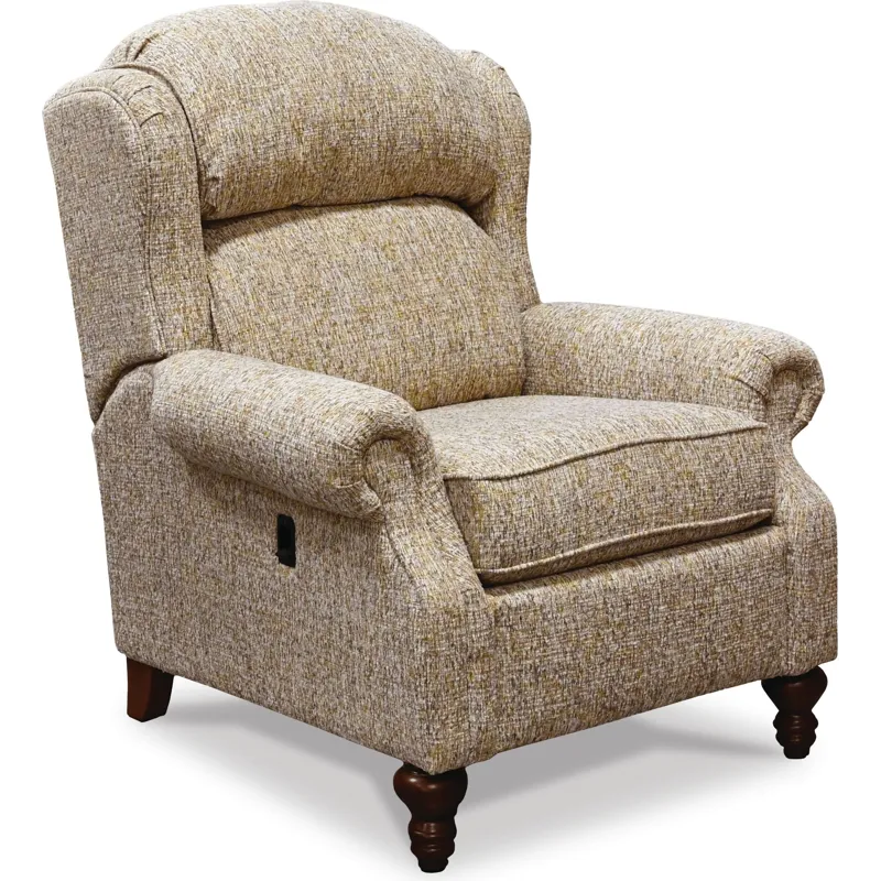 Della's tall bustle back, tall tapered leg, and rolled arm accented with an optional antique brass nailhead trim paired with its tilt back mechanism strike a balance of style and comfort perfect for your home. Matching ottoman also available.