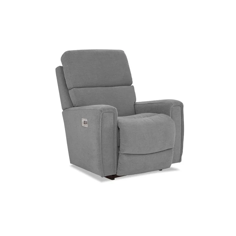 Style and head-to-toe comfort blend in the Apollo Power Rocking Recliner with Headrest and Lumbar. Sleek, padded track arms and a box-border back make a bold statement. Rock in the cozy bucket seat or adjust head, back and legs for peak contentment!