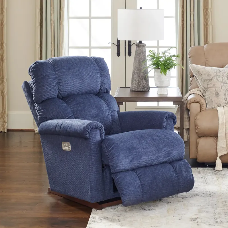The Pinnacle Power Rocking Recliner with Headrest and Lumbar has an easygoing style that’s just right for resting and relaxing. Sink in and enjoy its plushly pillowed tall back and padded rolled arms. The chaise seat and legrest cradle your body in a continuous zone of comfort. Simply use the side-mounted 4-button control panel to recline and raise your feet independently for perfectly customized comfort. There’s even a built-in USB port to power your phone or tablet. When you’re not reclining, it’s a relaxing rocker with a smooth, graceful motion.