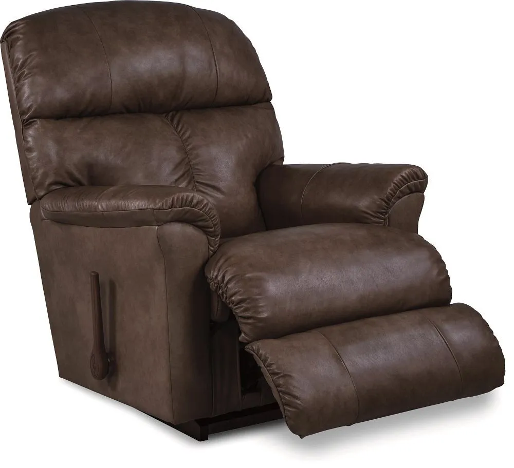 The Reed Rocking Recliner is a casual family favorite that's sure to become the destination for comfort in any home. It features ultra-plush padding on the flared arms and back, plus a one-piece chaise seat and legrest that create a continuous zone of comfort in the reclining position. Simply use the convenient handle on the outside arm to raise the legrest for reading, relaxing or watching TV. And when you're not reclining, it's a relaxing rocker with a smooth, graceful motion. Make it yours with your choice of fabrics and other available upgrades.