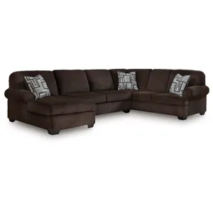 Cozy, casual comfort—made with everyday style in mind. This sectional with chaise is a reflection of your transitional tastes. Its soft-to-the-touch fabric, in a versatile warm chocolate brown, is detailed with a subtle corded design for added flair. And with the included chaise offering plenty of space to stretch out, this sectional is a welcome companion for lounging with family and friends.