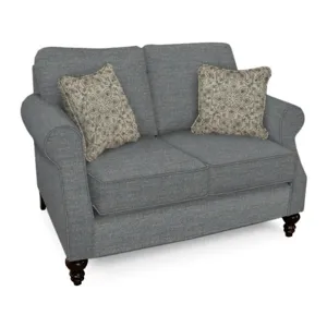 Our Jones collection is a sure winner. It's petite scale is trumped only by its comfort and traditional style. With a scooped rolled arm, clean front rail, and turned wooden leg, how can you go wrong? Customize your fabric and your seat to make it truly your own. This collection includes a sofa and loveseat. Take a look at Brinson for a great coordinating chair!