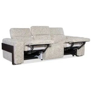 The Atlas Power Sofa with Power Headrest is the ultimate in luxurious seating. With three spacious seats, power recline, and adjustable headrests, it combines comfort and style. The Odyssey Frost fabric and ebony wood banding provide a modern aesthetic, while the soft chenille yarns deliver a plush experience. Ideal for larger living spaces, this sofa is a statement piece that doesn't compromise on comfort.