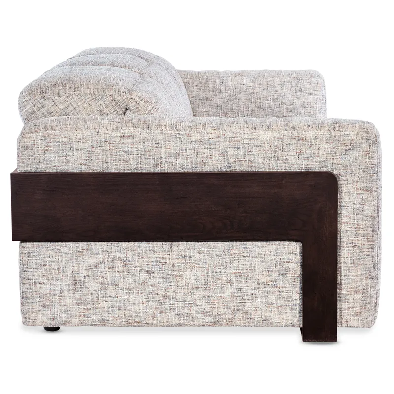 - Dark ebony finish on wood detail paired with lighter-toned fabric provides a welcomed contrast